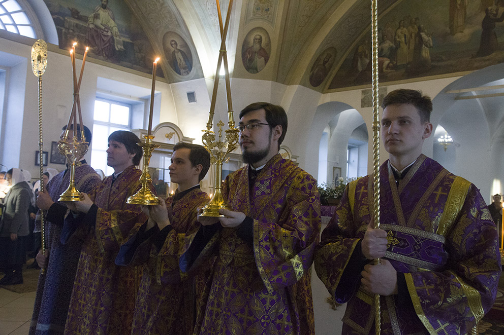 В канун недели 5-й Великого поста, преподобной Марии Египетской, митрополит Ярославский и Ростовский Вадим совершил Всенощное бдение в Казанском женском монастыре г. Ярославля. За богослужением помогали воспитанники семинарии.