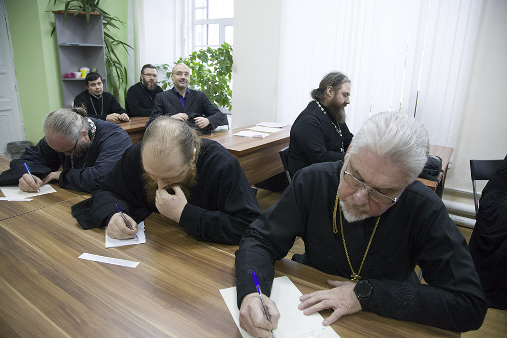 16 декабря прошел выпускной экзамен, который принимали игумен Адриан (Пашин) (МДА), иерей Павел Ермилов (ПСТГУ), первый проректор Ярославской духовной семинарии иеромонах Сергий (Барабанов), проректор семинарии по научной работе профессор А. Г. Шустров, руководитель курсов иерей Алексий Ларин.