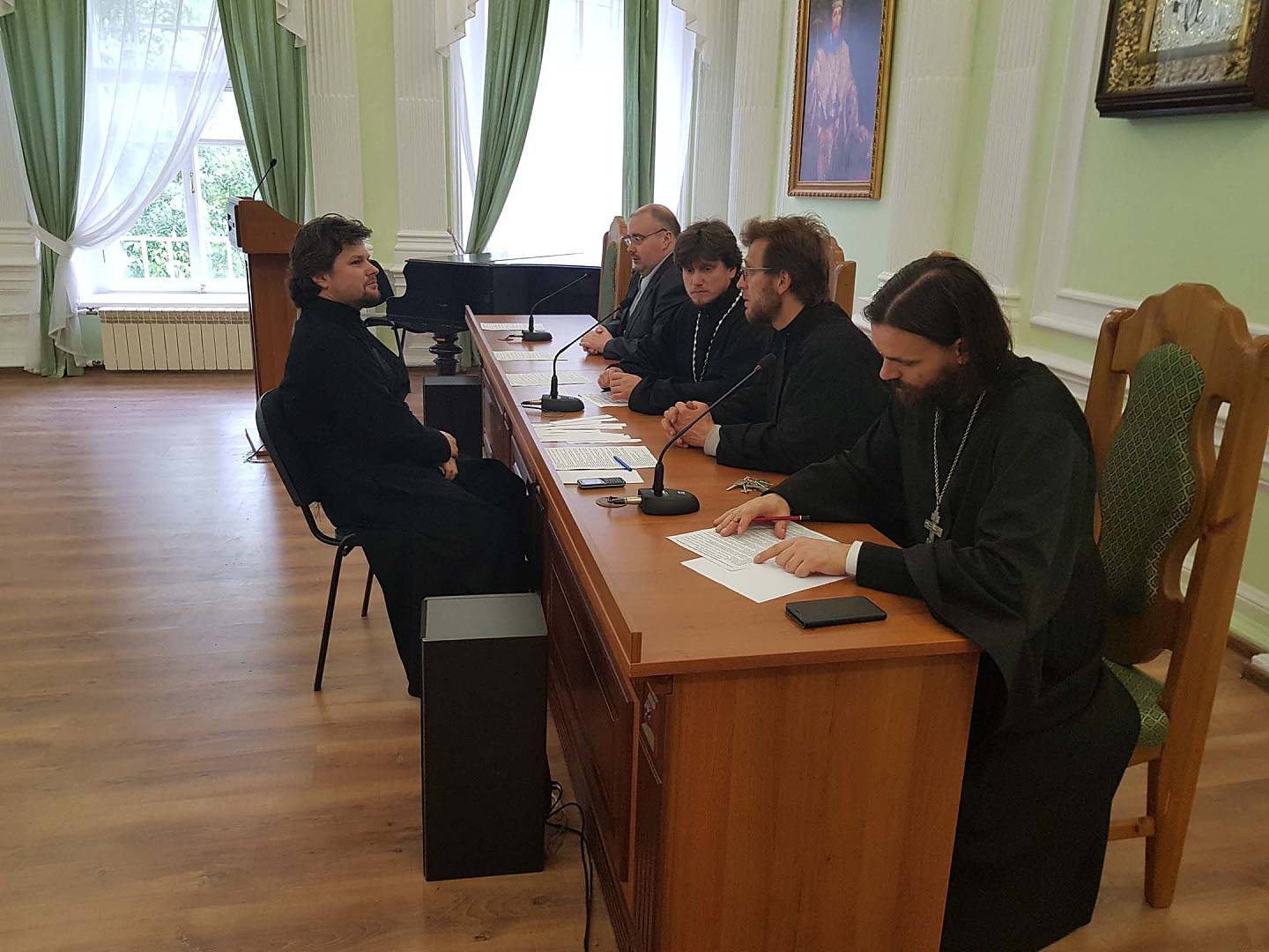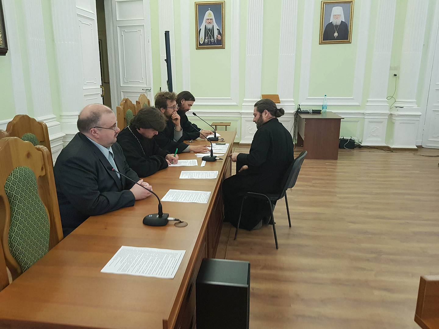 Выпускной экзамен принимали первый проректор семинарии, зав. кафедрой церковно-практических дисциплин иеромонах Сергий (Барабанов); руководитель курсов повышения квалификации священнослужителей, заведующий сектором заочного обучения иеромонах Андрей (Кукушкин); зам. руководителя Курсов церковных специалистов в области катехизической работы, зам. зав. кафедрой гуманитарных дисциплин Андрианов Дмитрий Александрович; доцент Губкин Олег Васильевич; помощник проректора по научной работе иерей Артемий Пацкалев.