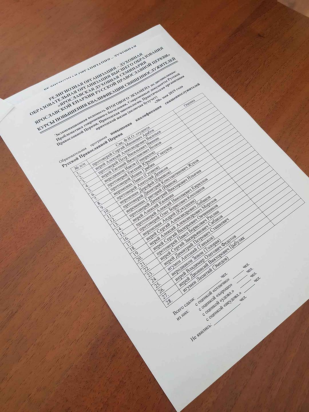 Прошел итоговый экзамен на курсах повышения квалификации священнослужителей