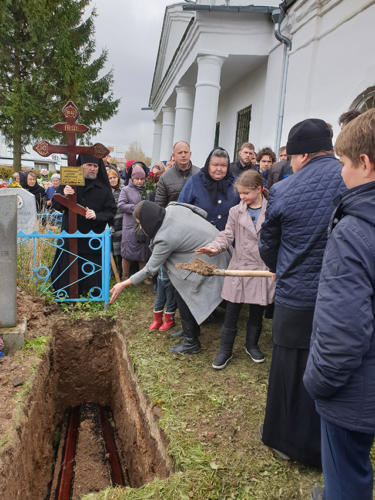 Батюшка был похоронен рядом с Троицким храмом с. Пахма, в котором служил в последние годы.