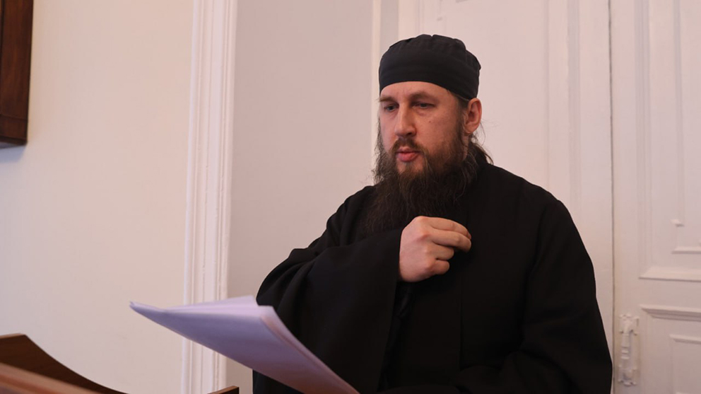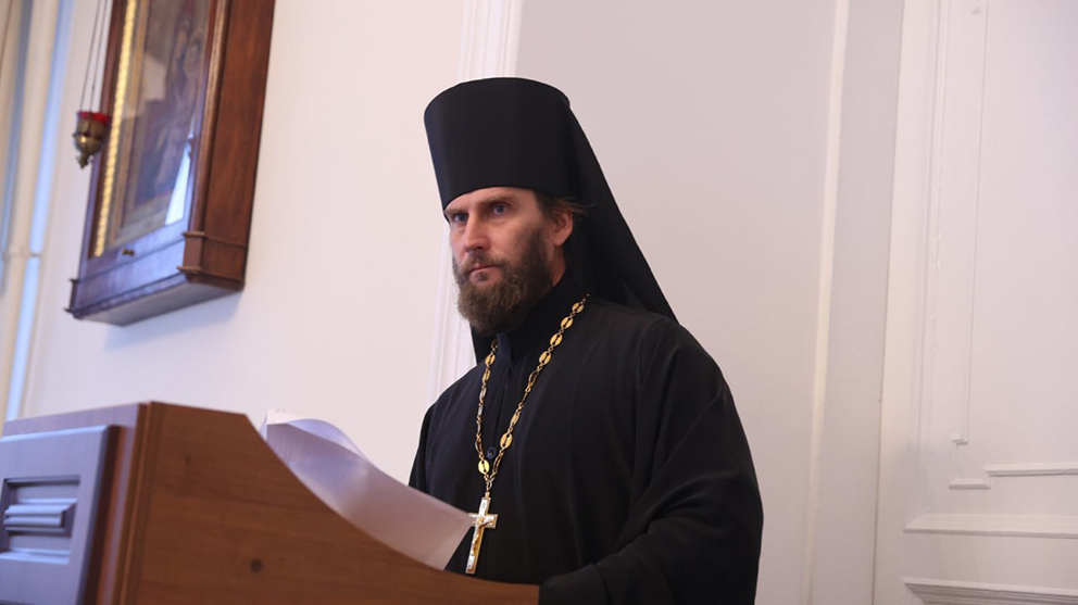 Наместник Спасо-Яковлевского мужского монастыря г. Ростова Великого игумен Сергий (Губин) выступил с докладом «Учения Отцов (свт. Феофан Затворник и свт. Игнатий Брянчанинов) и стяжание внутреннего сердечного безмолвия».