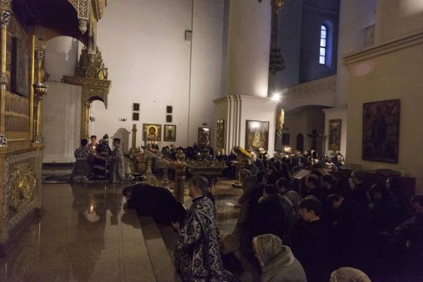 После отпуста вечерни владыка митрополит обратился к молящимся с архипастырским словом и благословил верующих на прохождение Великого поста. Затем был совершен чин прощения, за которым владыка и духовенство испросили друг у друга и у народа прощения.