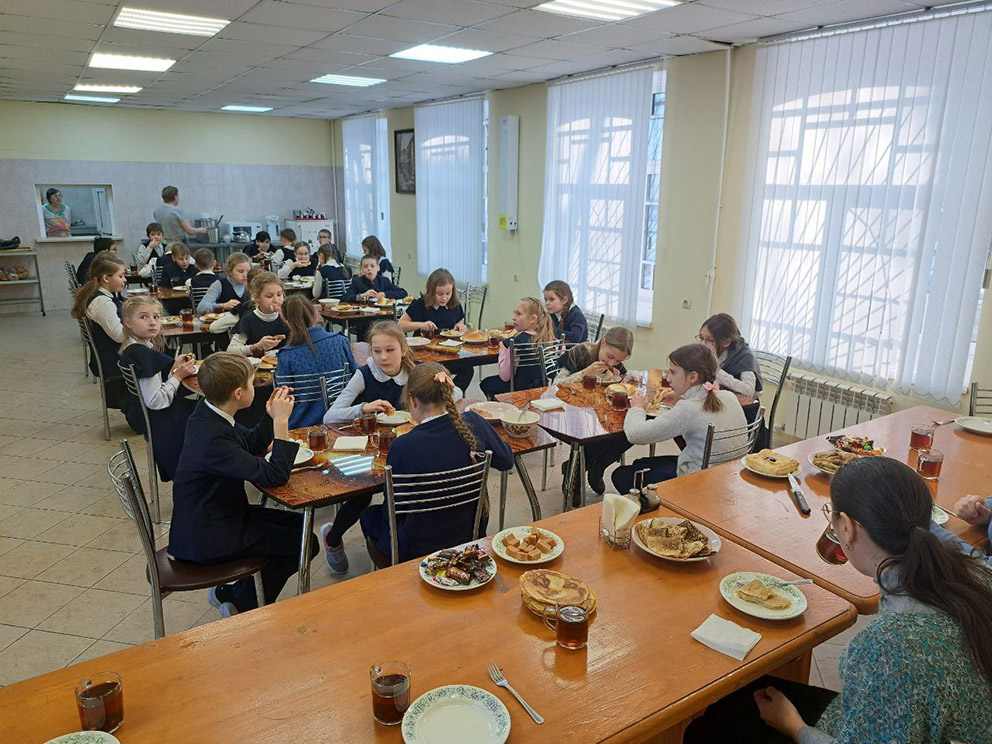Завершилась экскурсия в трапезной, где гостей угощали чаем с блинами.