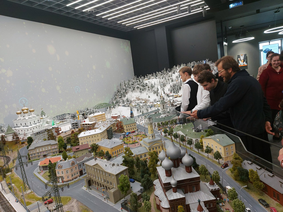 В первый день нового учебного года воспитанники семинарии и регентской школы при семинарии вместе с первым проректором иеромонахом Сергием (Барабановым) посетили интерактивный музей Макет Золотого кольца России.