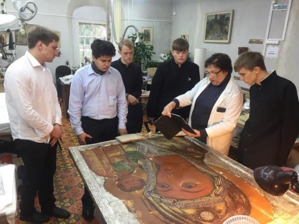 15 сентября 2022 года воспитанники подготовительного курса Ярославской духовной семинарии вместе с первым проректором иеромонахом Сергием (Барабановым) посетили храма Илии Пророка и государственную реставрационную мастерскую.