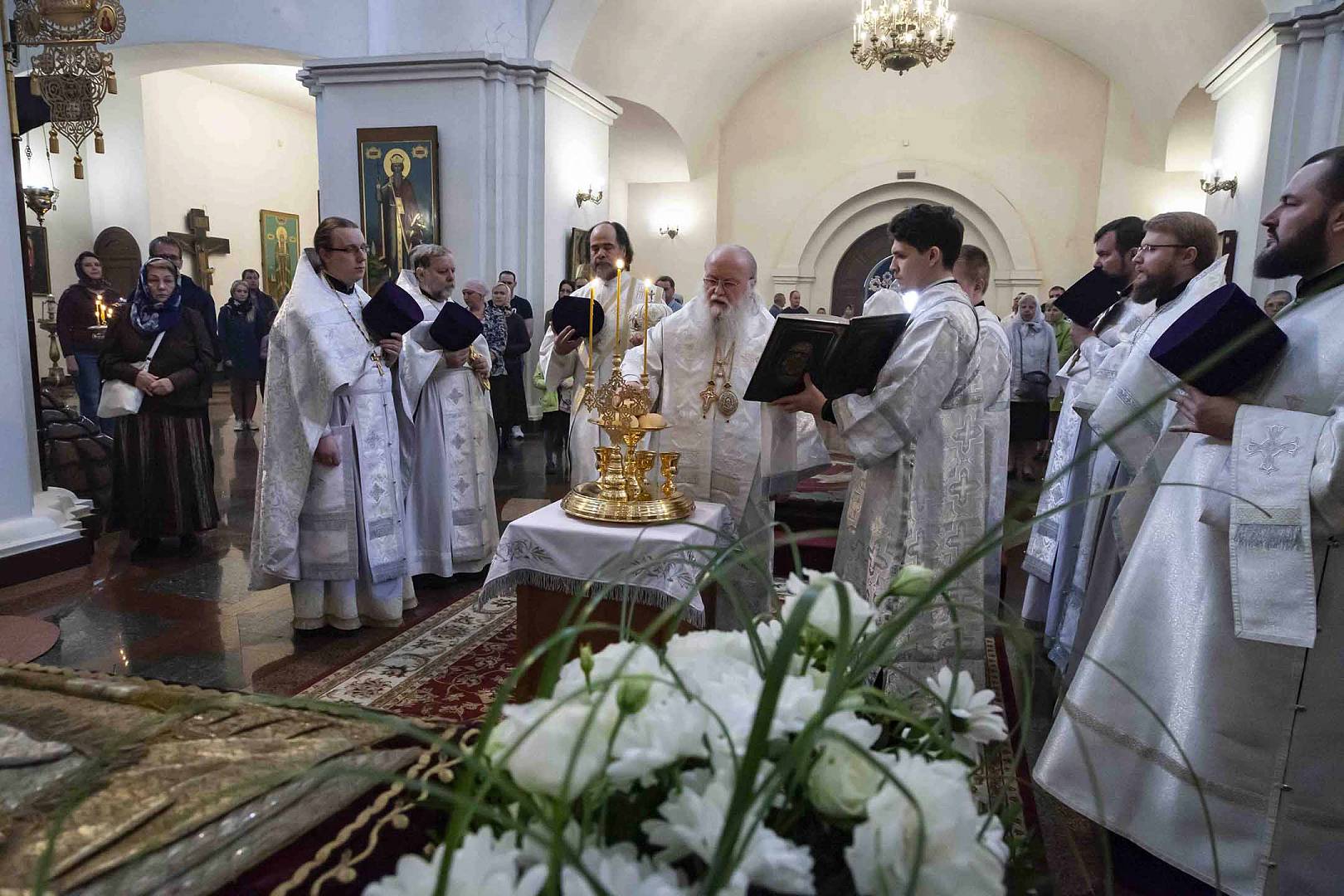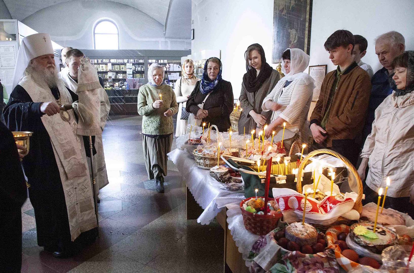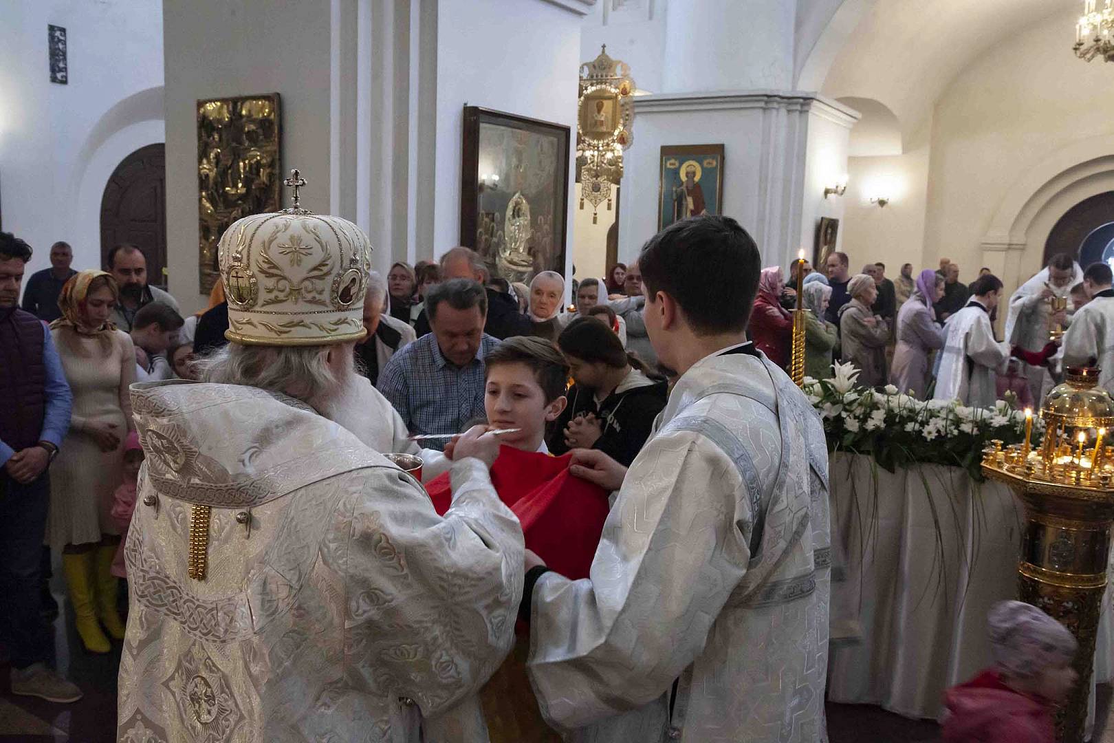 Владыка вознес молитву о мире на Святой Земле, которая ежегодно совершается в Великую субботу во всех храмах Русской Православной Церкви. По заамвонной молитве было совершено освящение хлеба и вина. После богослужения владыка поздравил всех с Великой Субботой и освятил куличи и пасхи.