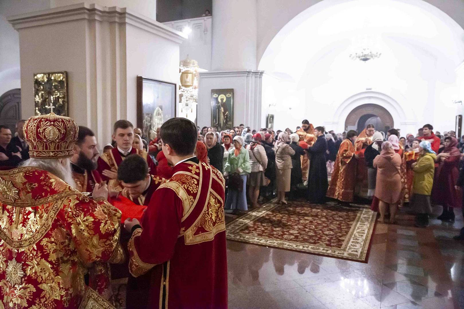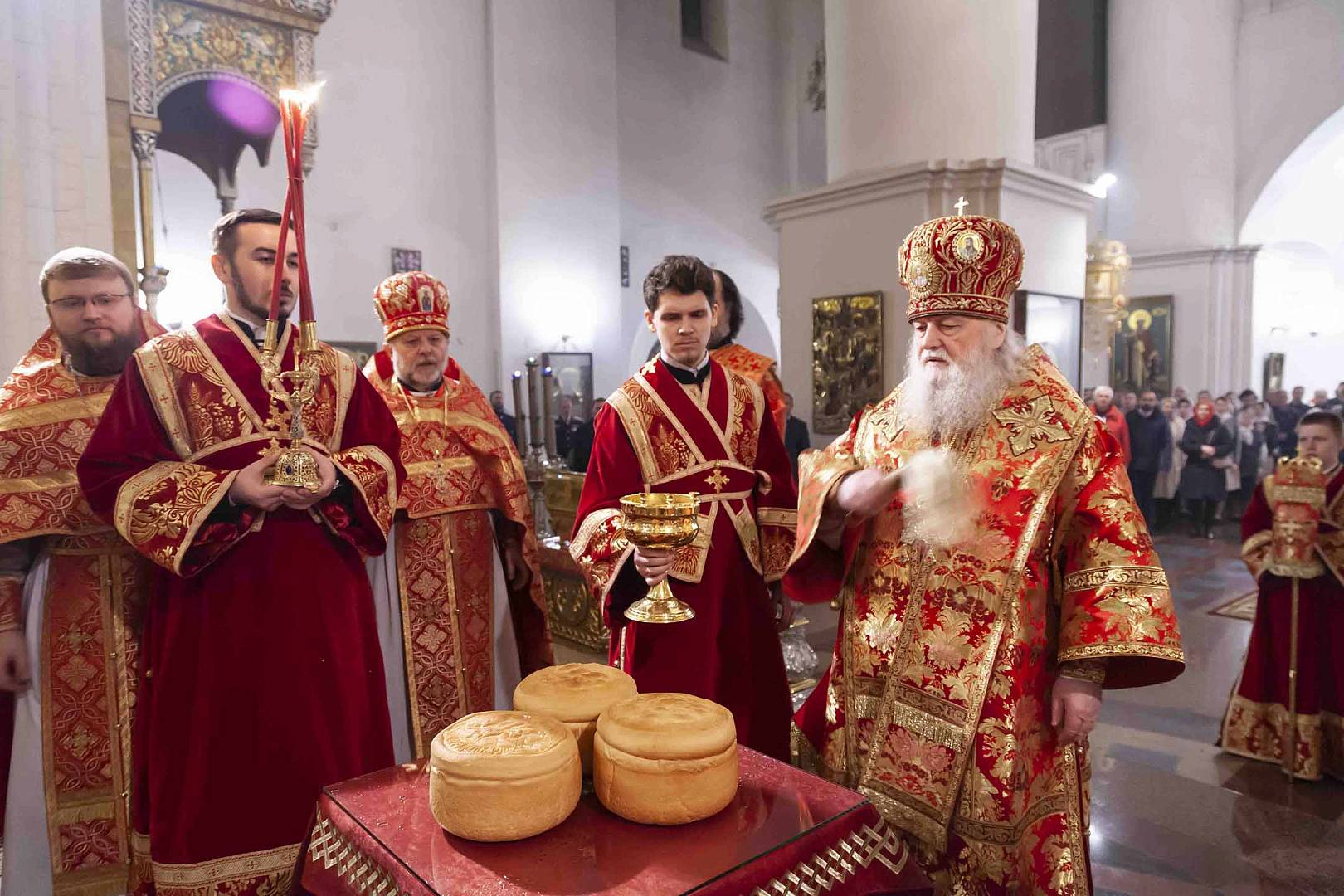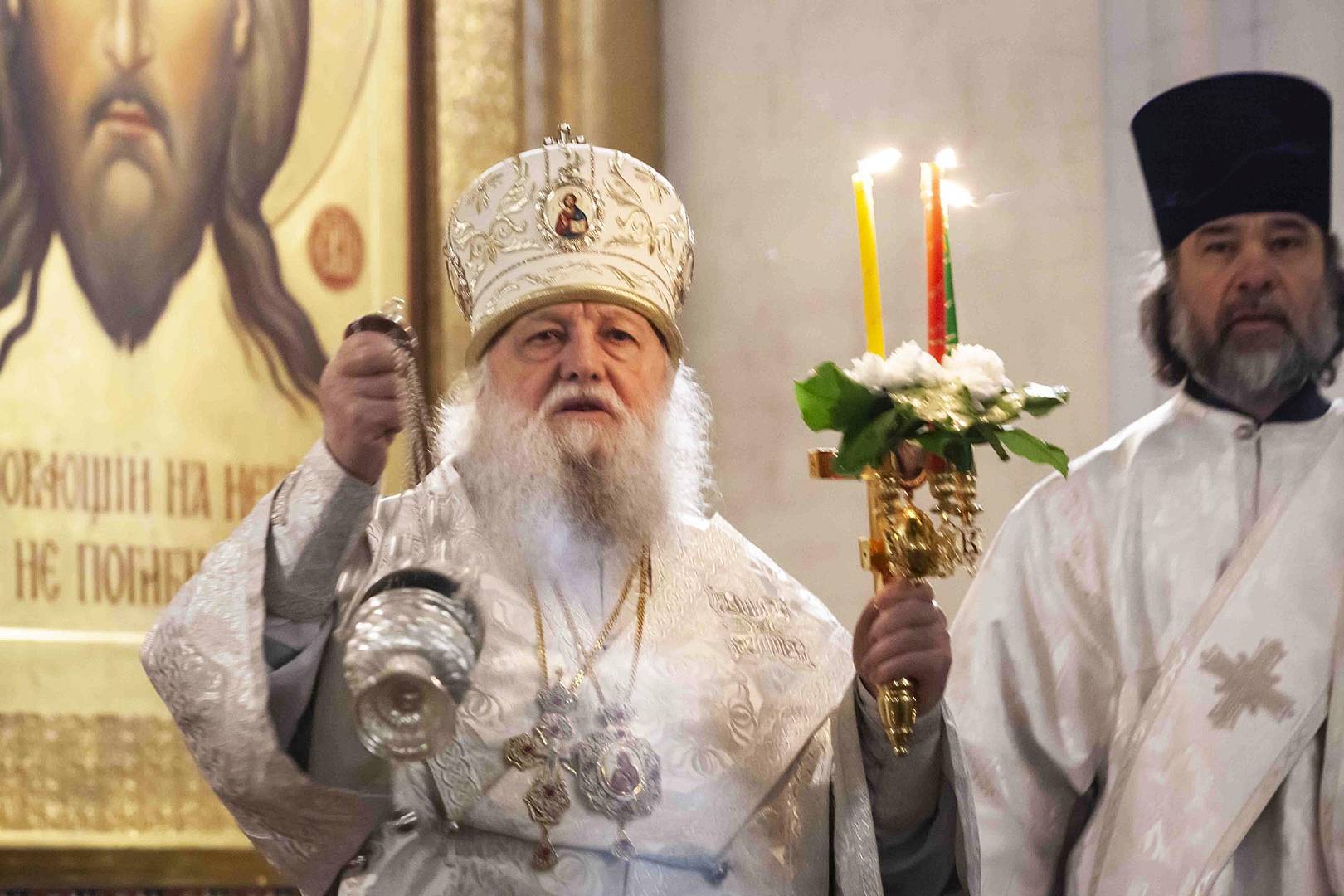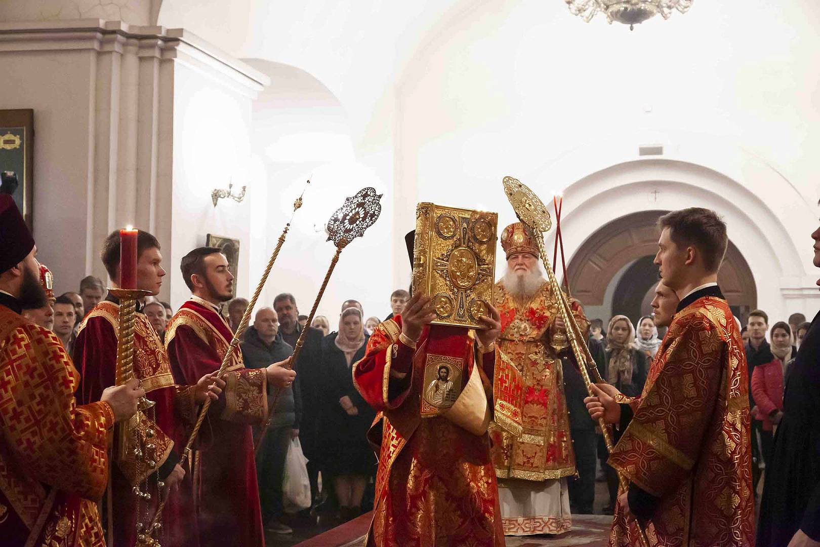 После запричастного стиха митрополит Пантелеимон огласил Пасхальное послание Святейшего Патриарха Московского и всея Руси Кирилла. По заамвонной молитве владыка освятил артос – хлеб на закваске, который символизирует присутствие Иисуса Христа в нашей жизни. Традиция употреблять артос восходит к апостольскому времени.