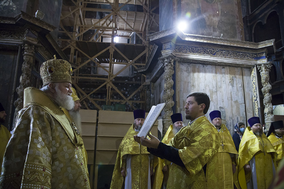 В праздничный день Божественную литургию в Успенском соборе кремля совершил митрополит Ярославский и Ростовский Вадим в сослужении викария Ярославской епархии епископа Некрасовского Бориса и клириков епархии.
