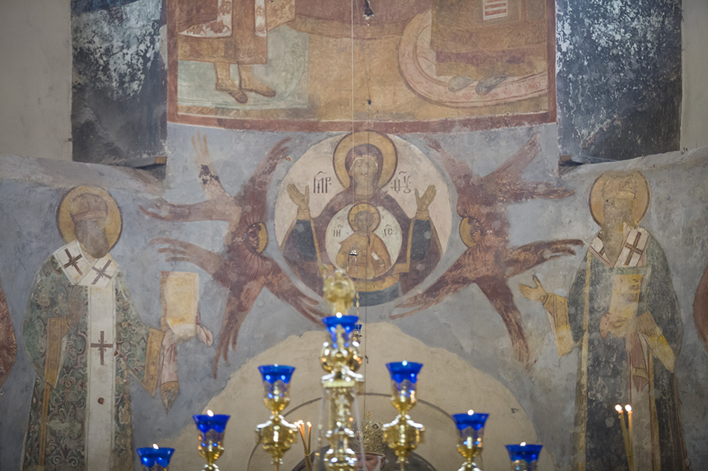 К сожалению, разрушены и многие памятники. И мы здесь находимся в великолепном соборе, который столь величествен и столь печален. И участь его действительно печальна. Хотелось бы, очень хотелось бы как можно скорее исправить ошибки предыдущих поколений. Как можно скорее восстановить эти святые стены. Восстановить, чтобы они засияли той же красотой, которую замыслили ее создатели. Которые этой красотой звали нас к вечной красоте, о которой говорил Достоевский… К красоте, которая возводила бы к гармонии, к гармонии Божественной правды и Божественного прекрасного, что заключает в себе акт творения.