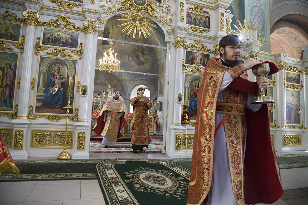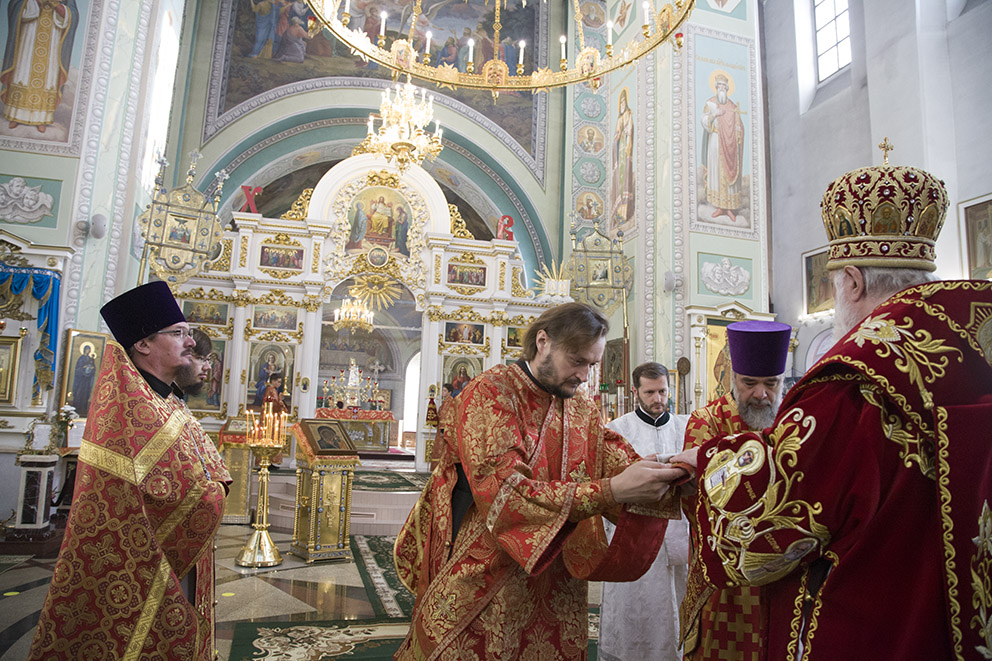 За Божественной литургией владыка митрополит рукоположил выпускников семинарии: в сан священника – диакона Михаила Преображенского, в сан диакона – Дмитрия Еремеева.