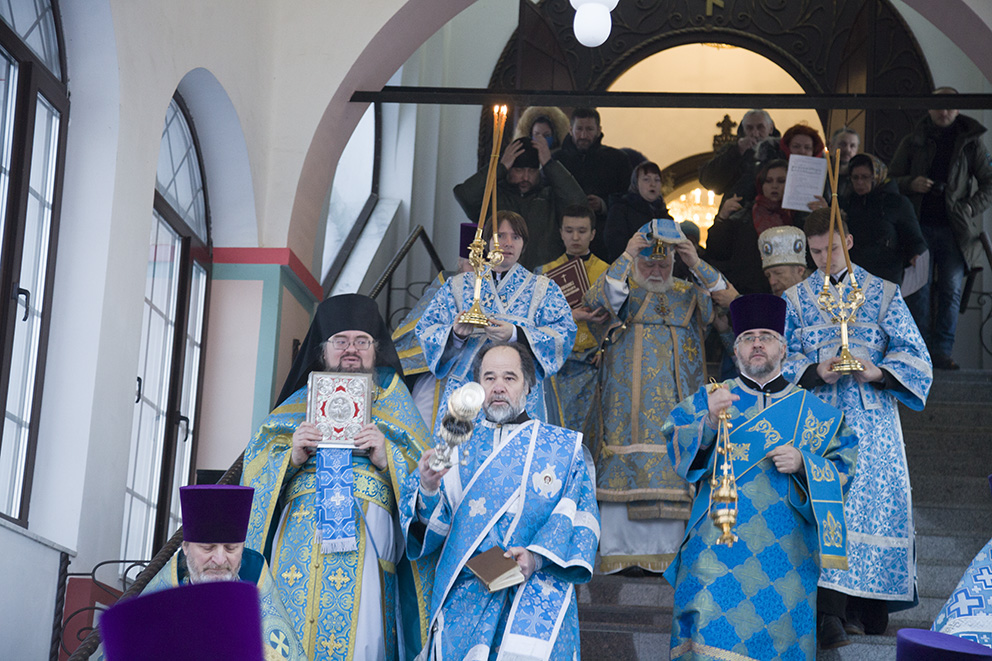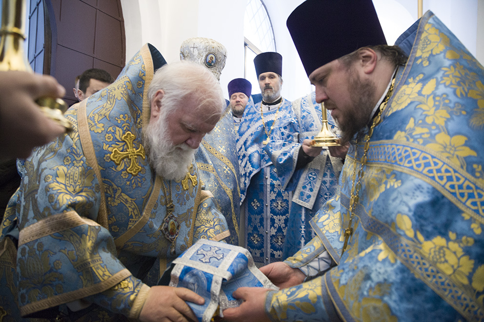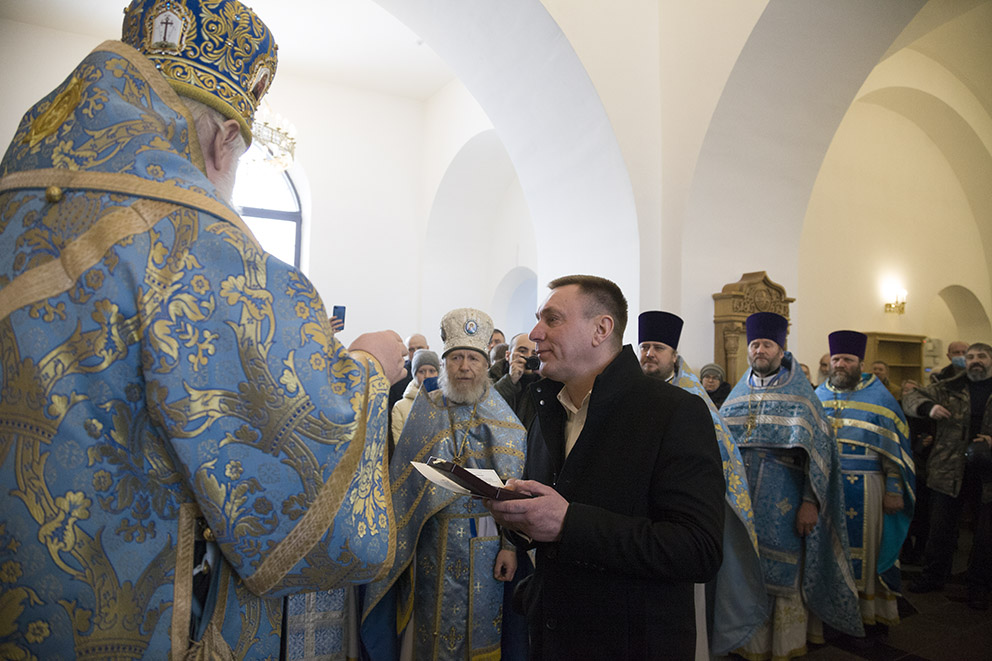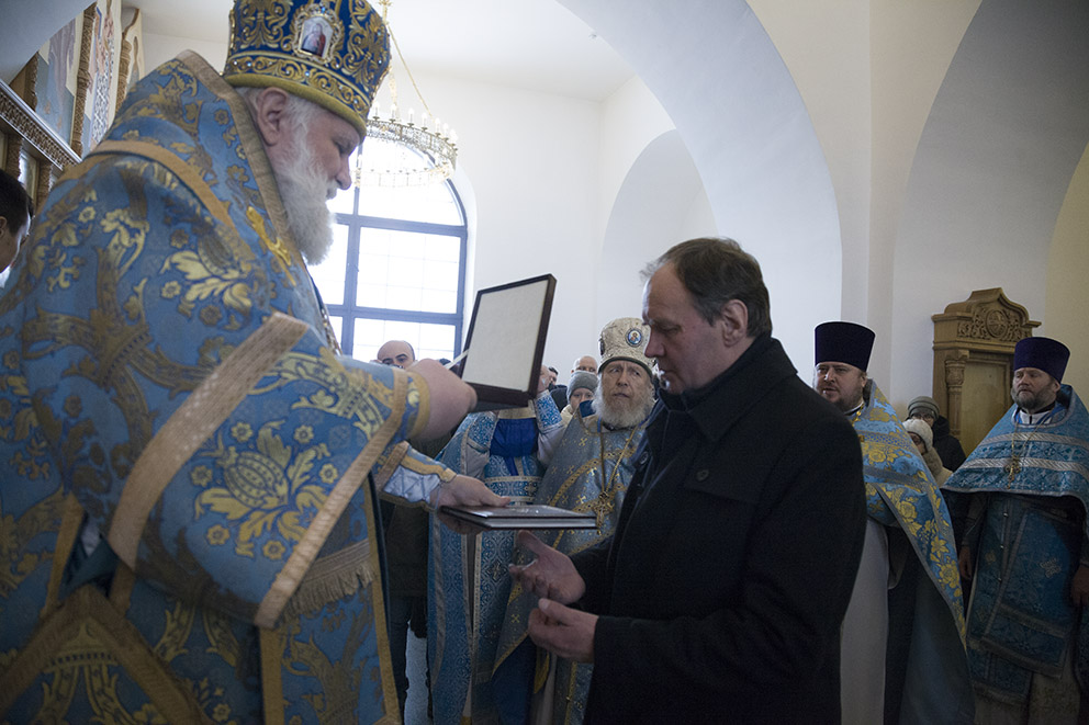 – Сегодня мы с вами присутствуем при событии, которое не видится человеческими очами и сознанием не постигается, – сказал владыка после службы. – Сегодня благодатью Божией и стараниями многих людей, которые трудились для того, чтобы был воздвигнут этот святой храм, спустя более чем двадцать лет после начала, строительство было завершено, и храм освящен. Возведение храма – это то, что необходимо для духовного возрождения нашего народа. И сегодня мы торжествуем, так как в храме совершается первая Божественная литургия.