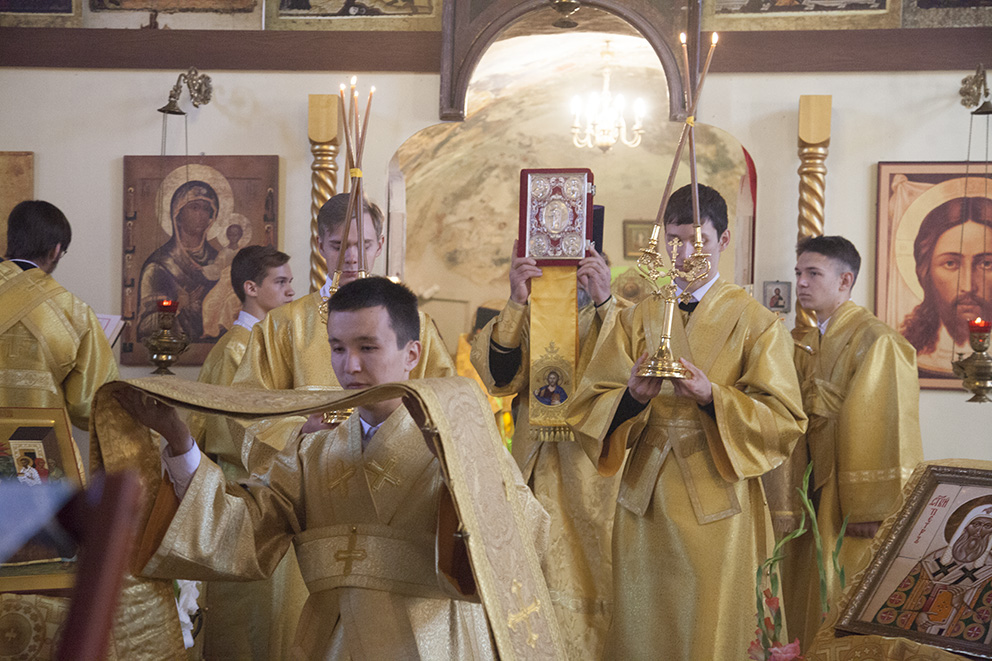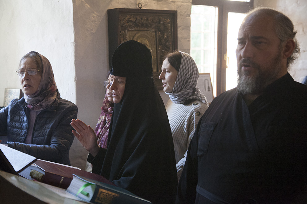 За богослужением пело два хора – архиерейский под управлением регента и заведующей Регентской школы семинарии монахини Георгии (Кисловой) и знаменный хор под управлением головщика Ивана Карпова.