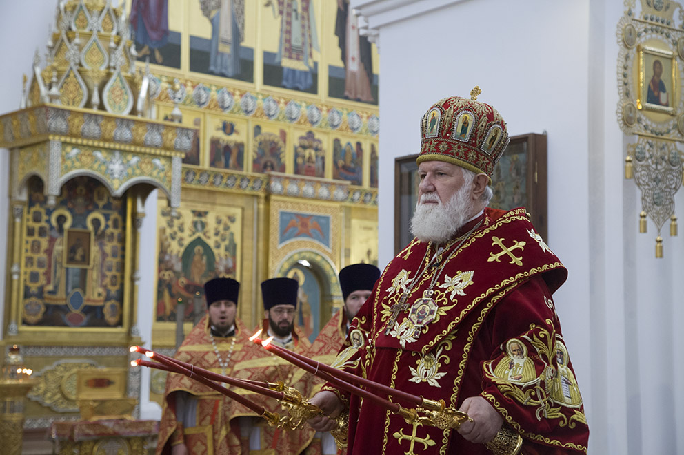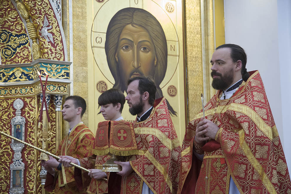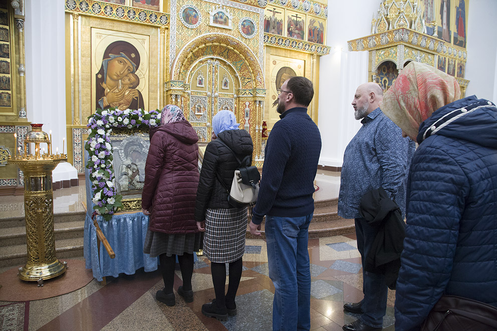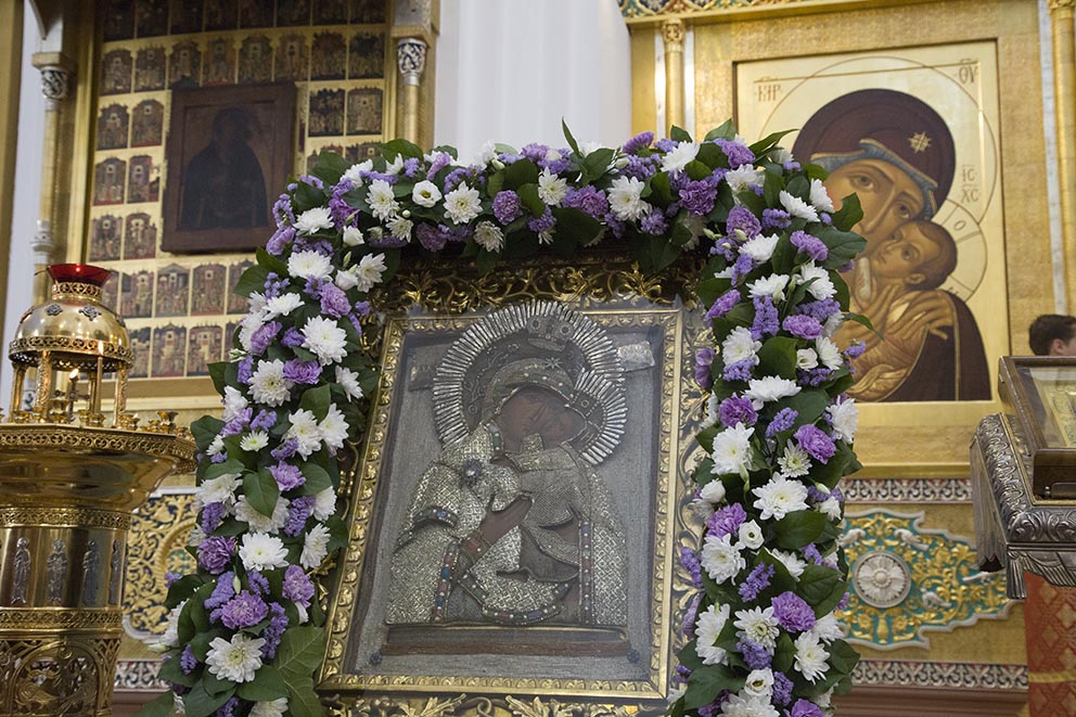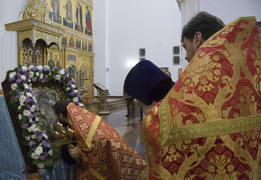 Перед богослужением в собор была принесена Толгская икона Божией Матери, которой можно будет помолиться в соборном храме до 20 августа.