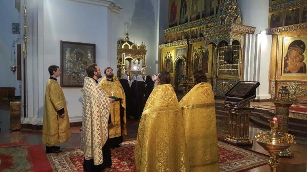 Молебен совершил первый проректор Ярославской духовной семинарии иеромонах Сергий (Барабанов) в сослужении преподавателей семинарии. За богослужением молились воспитанники семинарии, пел хор Регентской школы.