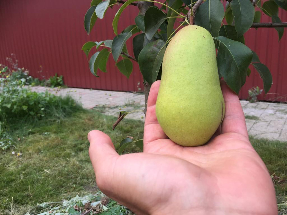 Яблоневый сад был посажен 4 года назад. В этом же году на совсем небольшом деревце появилась первая груша.