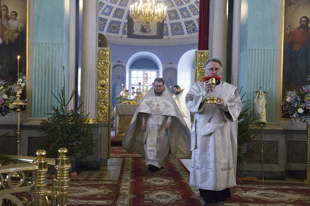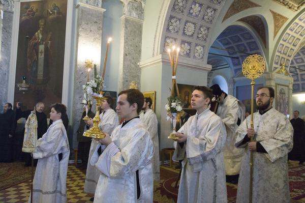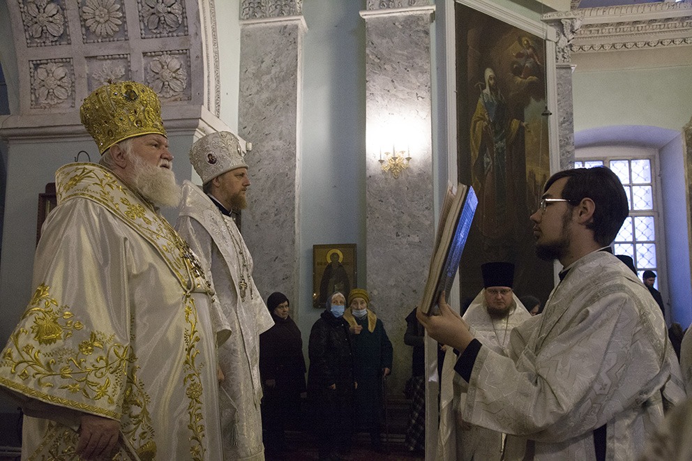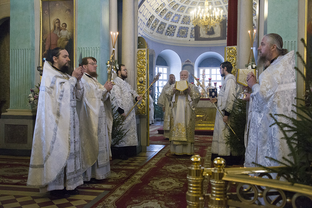 8 января 2022 года, на попразднство Рождества Христова, Собор Пресвятой Богородицы, митрополит Ярославский и Ростовский Вадим и епископ Переславский и Угличский Феоктист в сослужении клириков Ярославской епархии совершили Божественную литургию в Спасо-Яковлевском Димитриевом мужском монастыре г. Ростова Великого. За богослужением помогали воспитанники семинарии.