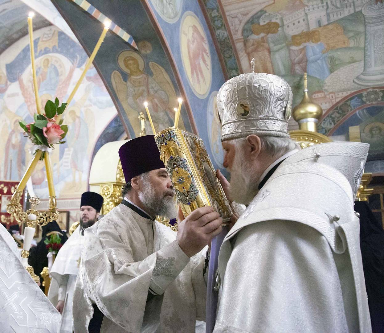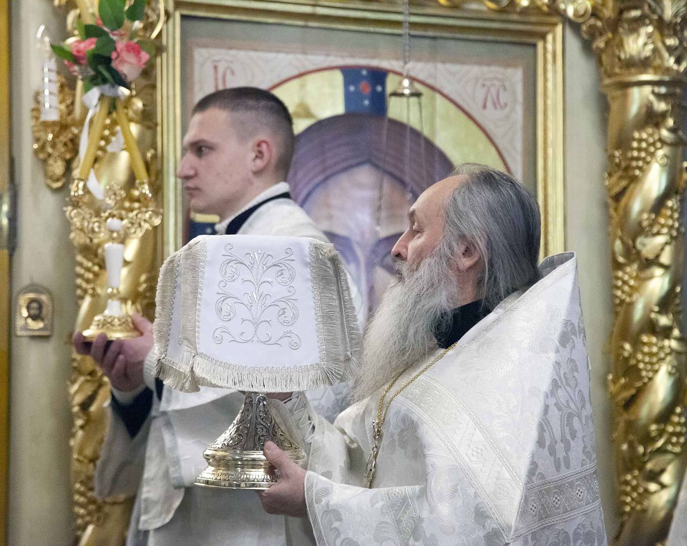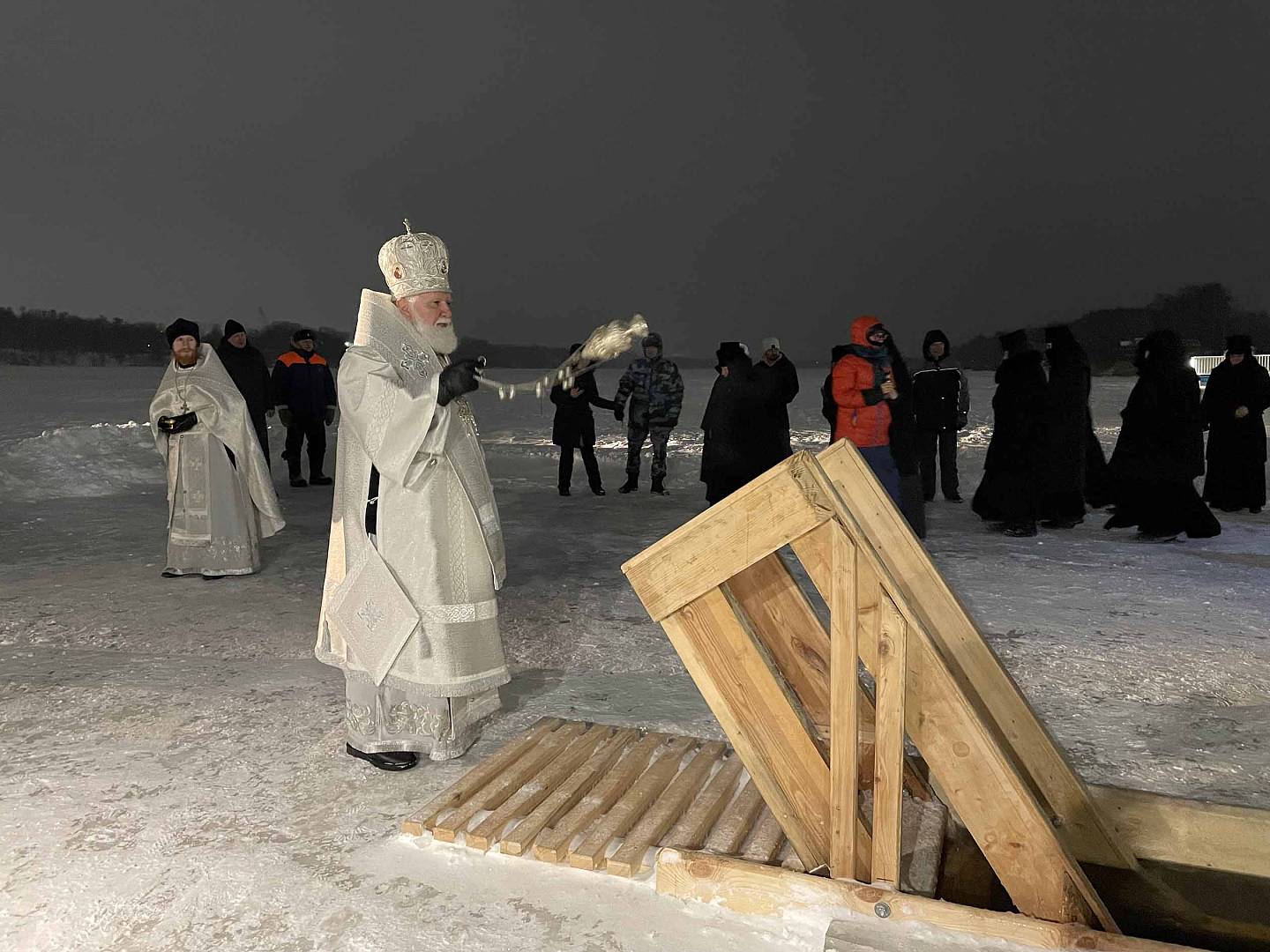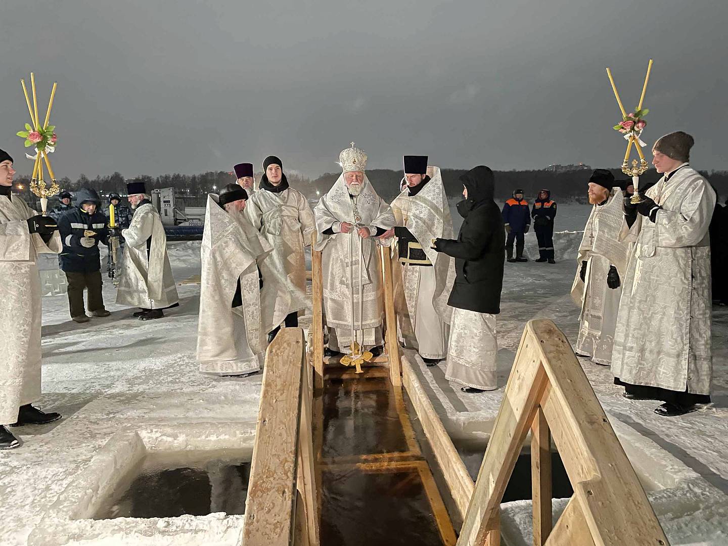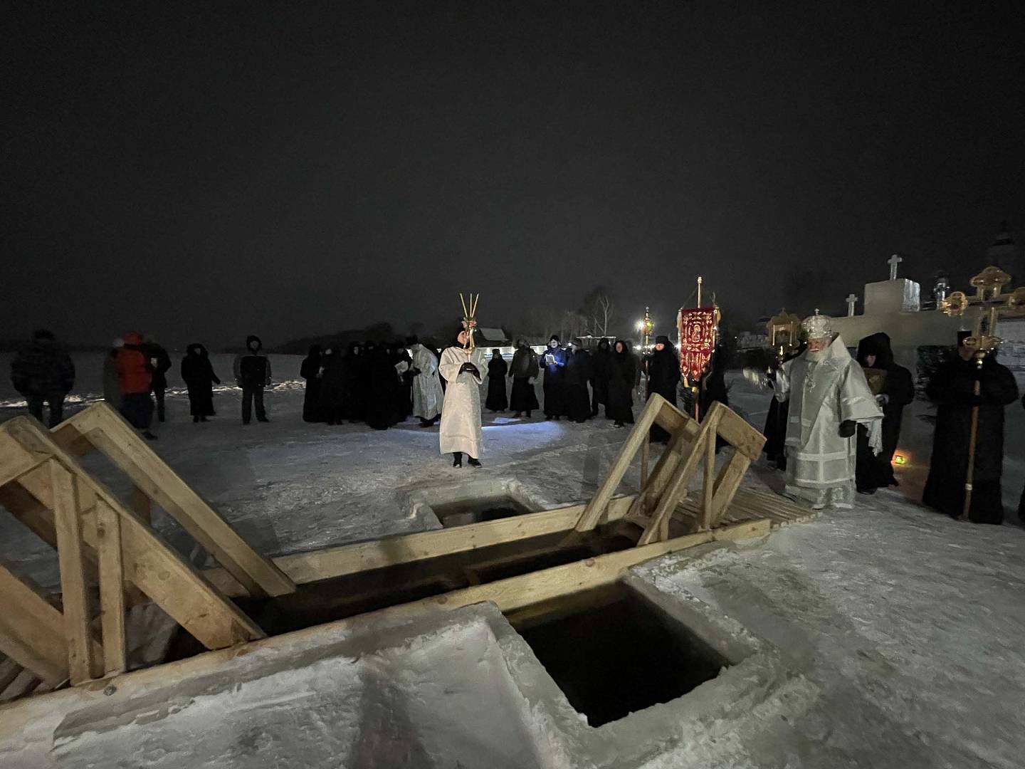 19 января Русская Православная Церковь празднует Крещение Господне, или Богоявление. По традиции, в ночь на 19 января, митрополит Ярославский и Ростовский Вадим совершил Божественную литургию в Крестовоздвиженском храме Свято-Введенского Толгского женского монастыря. За богослужением помогали воспитанники семинарии.