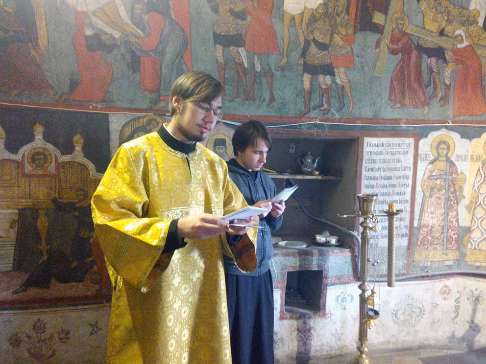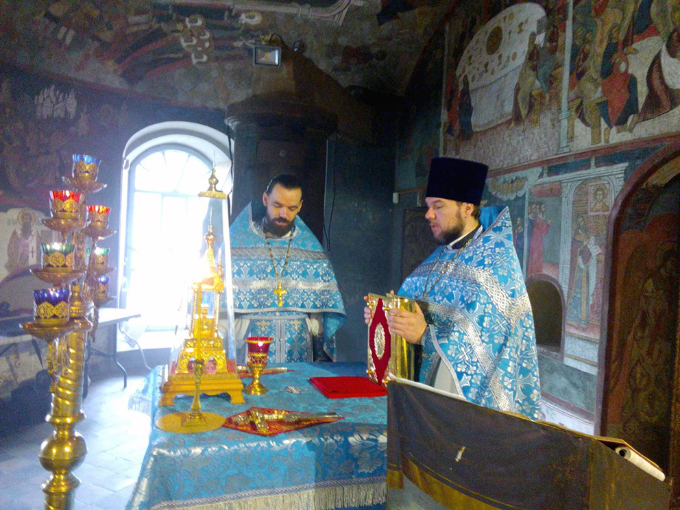Божественную литургию в Покровском приделе совершили клирик Успенского собора и преподаватель семинарии иерей Дионисий Цыбуляк и клирик собора и помощник проректора семинарии по научной работе иерей Артемий Пацкалев. За богослужением помогали воспитанники Ярославской духовной семинарии.