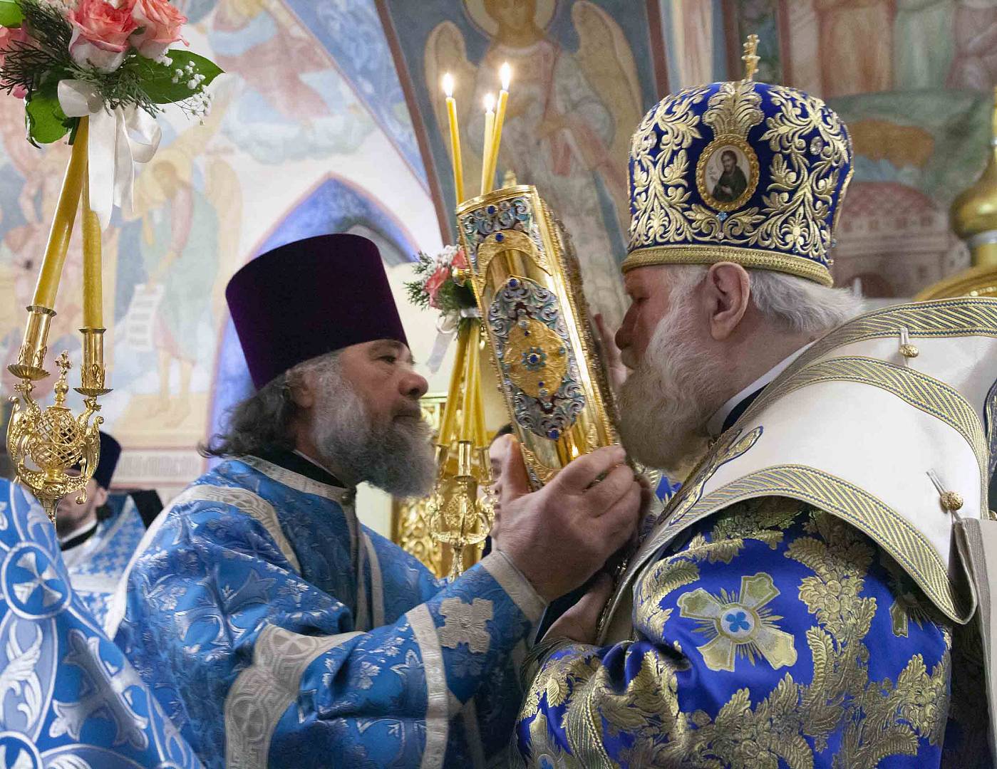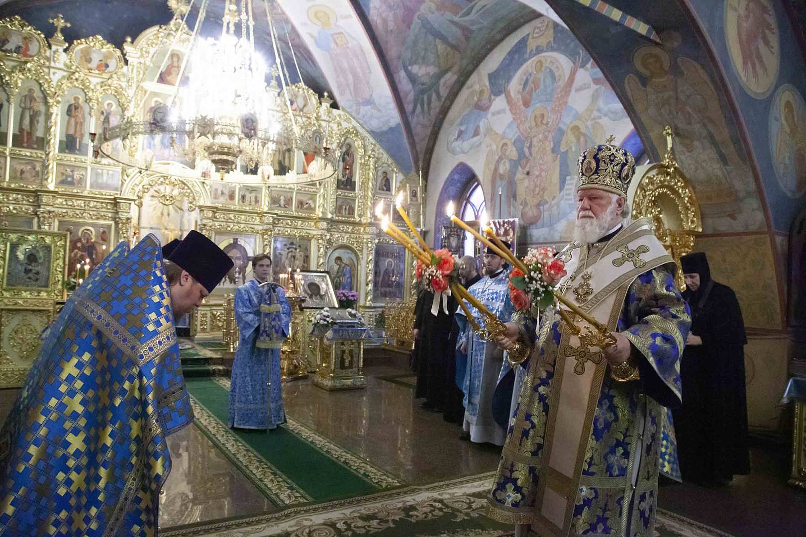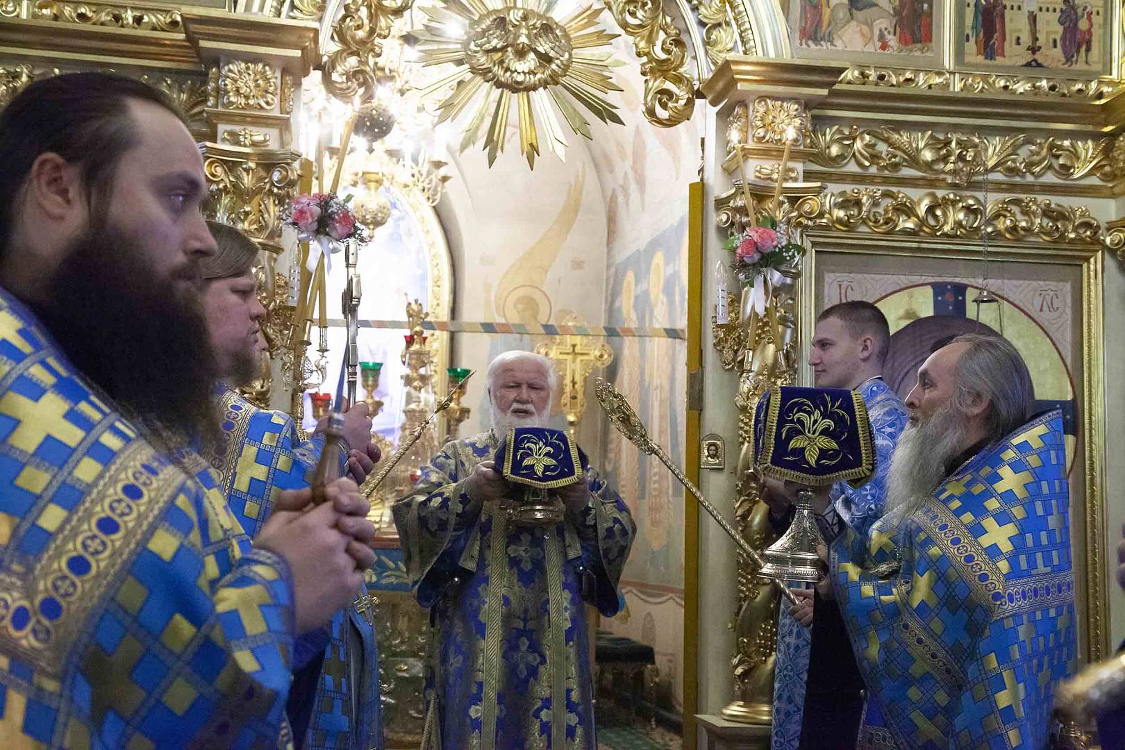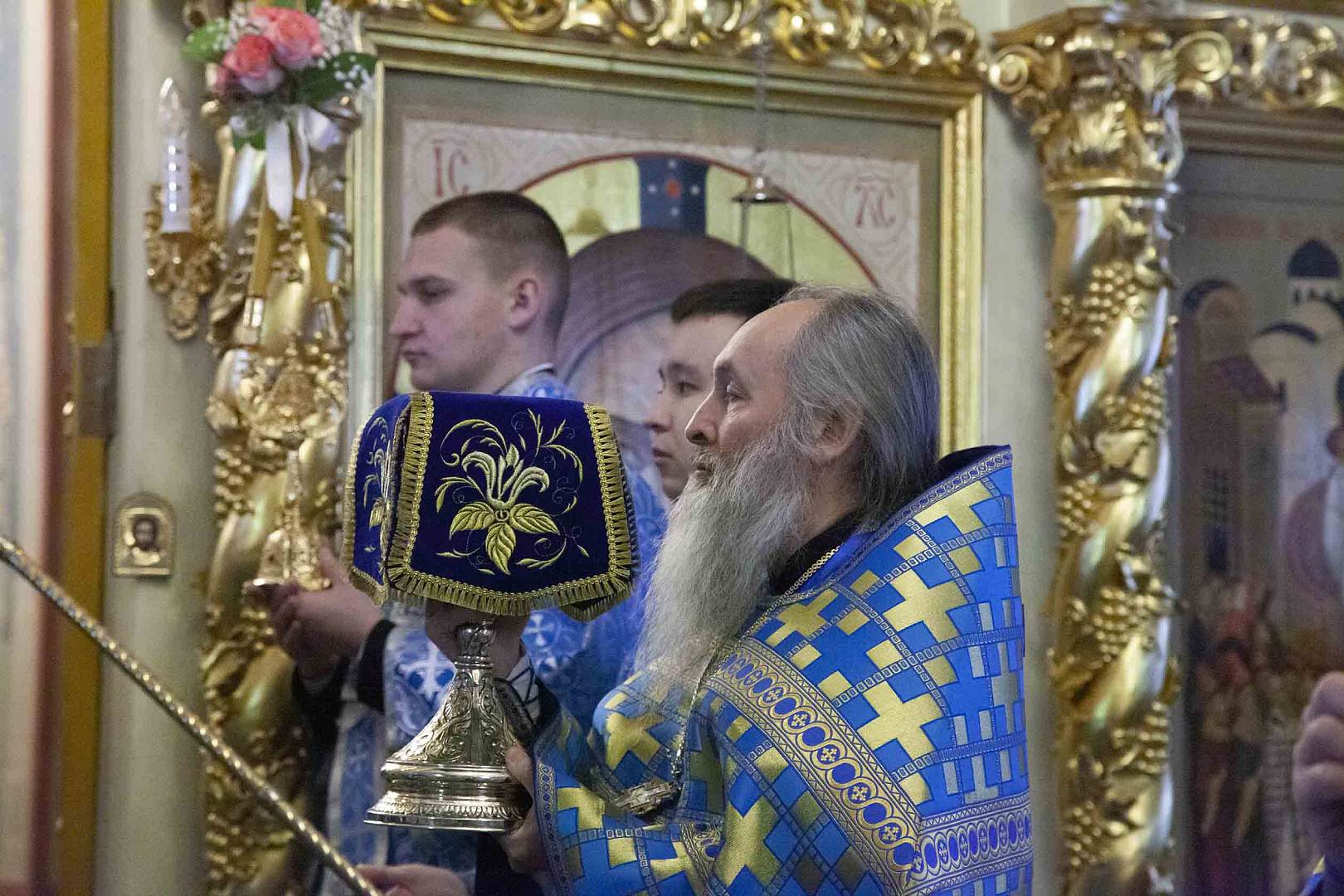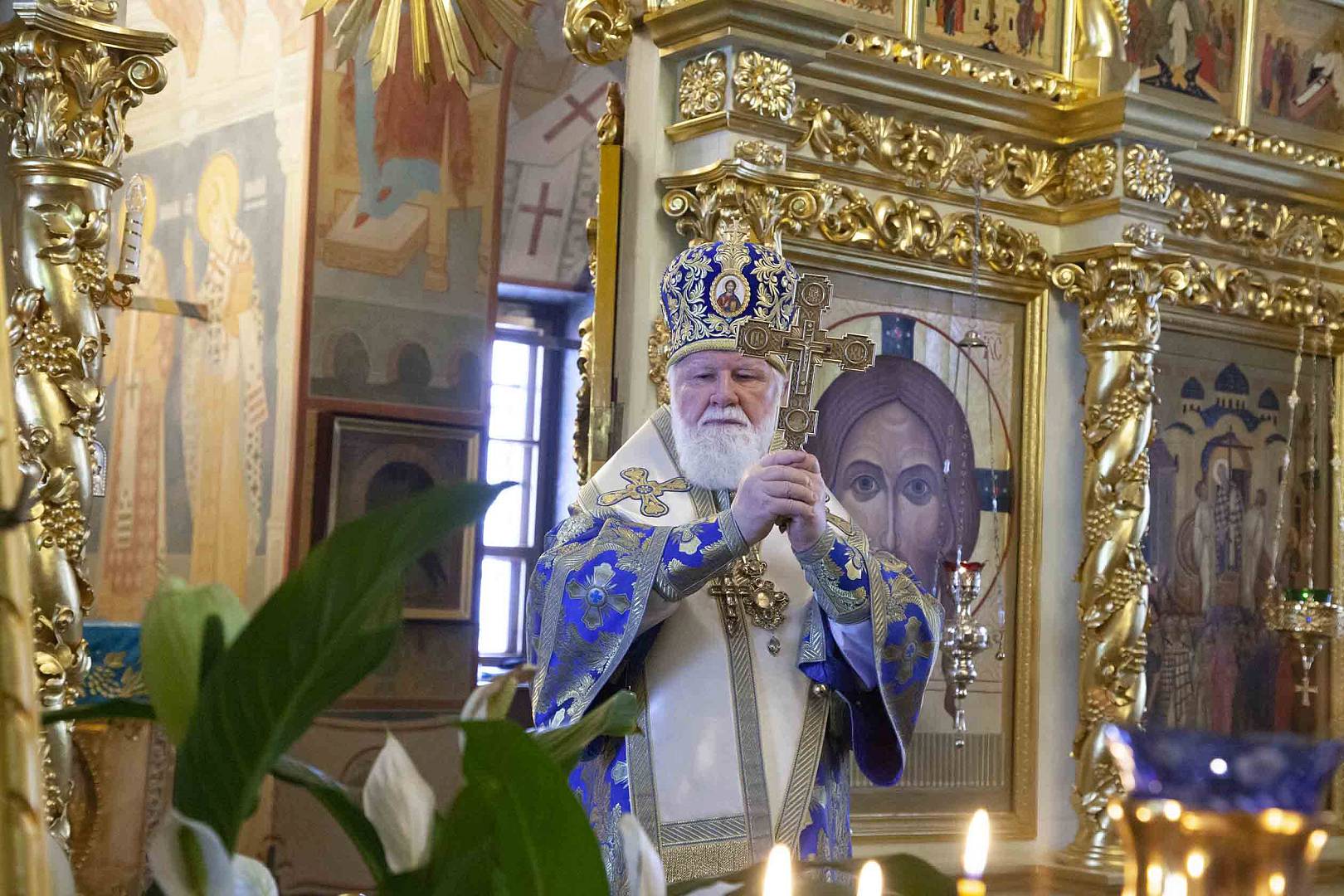 После Литургии владыка митрополит вместе с духовенством, настоятельницей монастыря игуменией Варварой, сестрами обители и паломниками совершили славление празднику.