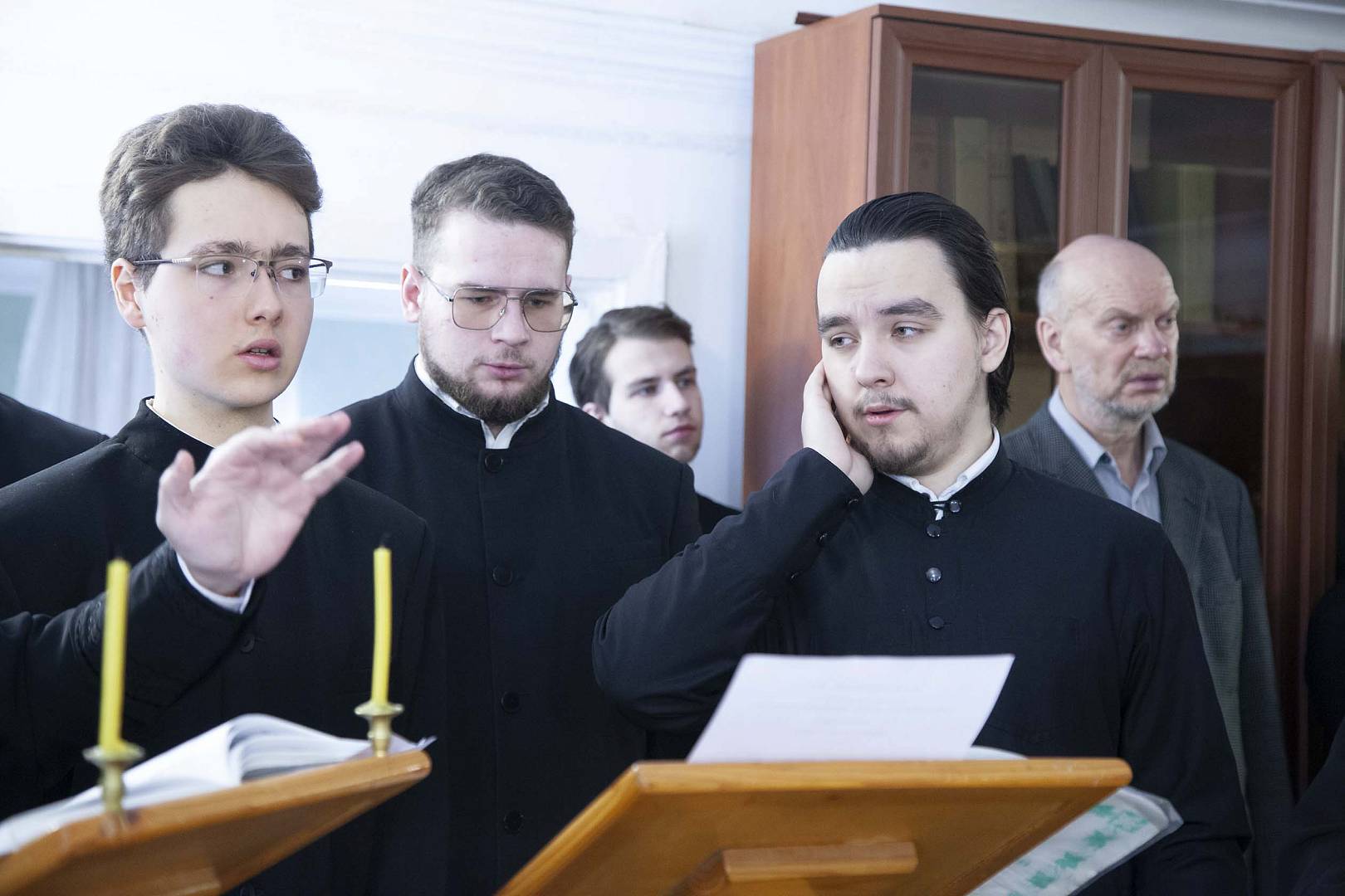 Песнопения Божественной литургии исполнил сводный хор преподавателей и воспитанников семинарии под управлением регента Григория Воскобойникова.