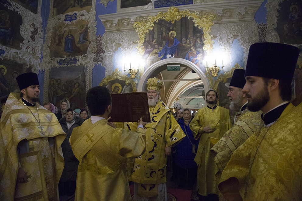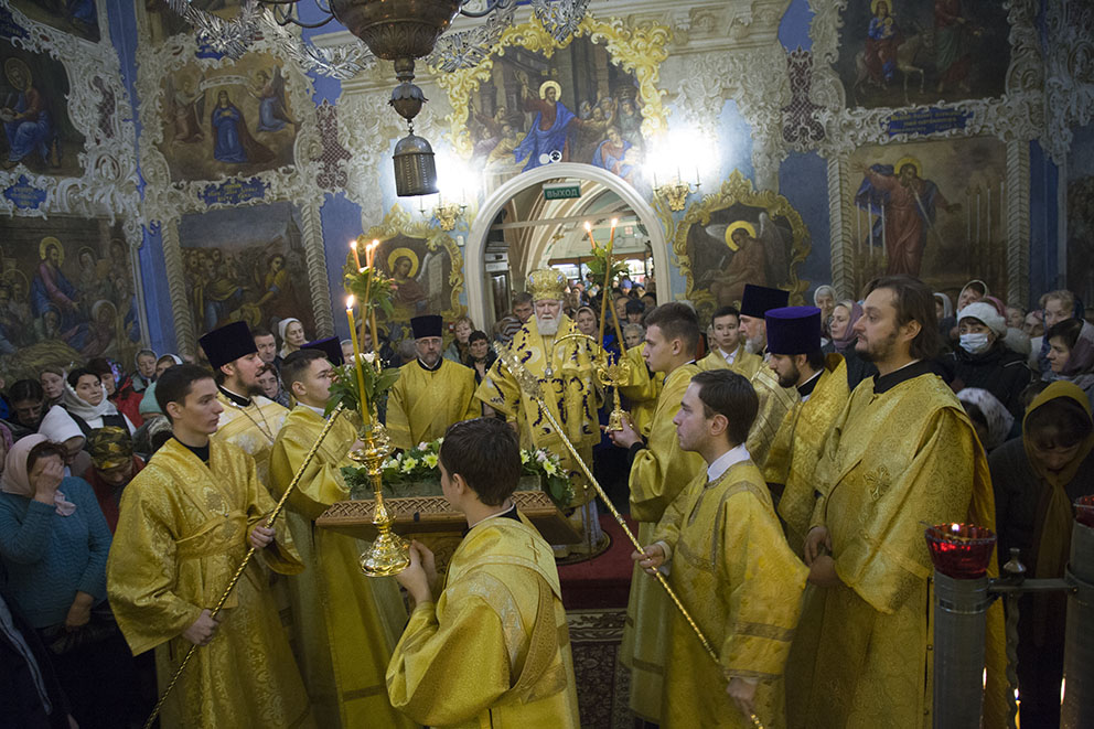Божественную литургию в Яковлевско-Благовещенском храме Ярославля в день престольного праздника совершил митрополит Ярославский и Ростовский Вадим в сослужении настоятеля храма протоиерея Алексия Кириллова и клириков храмов г. Ярославля. За богослужением помогали воспитанники семинарии.