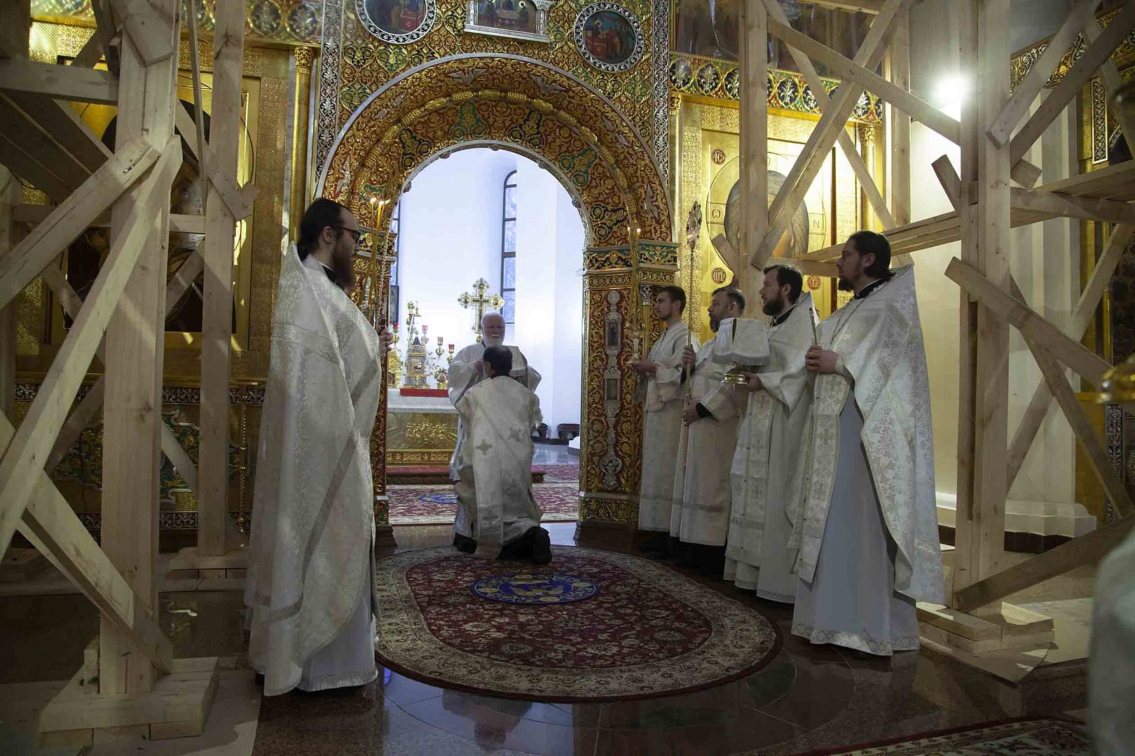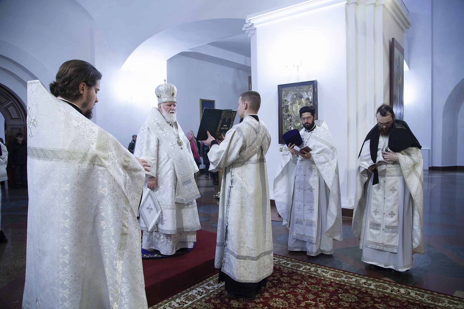 Вечером, в канун праздника Рождества Христова, митрополит Вадим совершил в Успенском соборе бдение. За богослужениями помогали воспитанники семинарии.