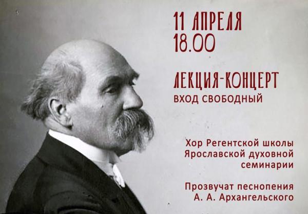 11 апреля 2024 года в Ярославской духовной семинарии, в рамках lll Всероссийского хорового фестиваля для регентских отделений духовных учебных заведений Русской Православной Церкви, пройдет лекция-концерт, посвященный 100-летию со дня смерти А. А. Архангельского.