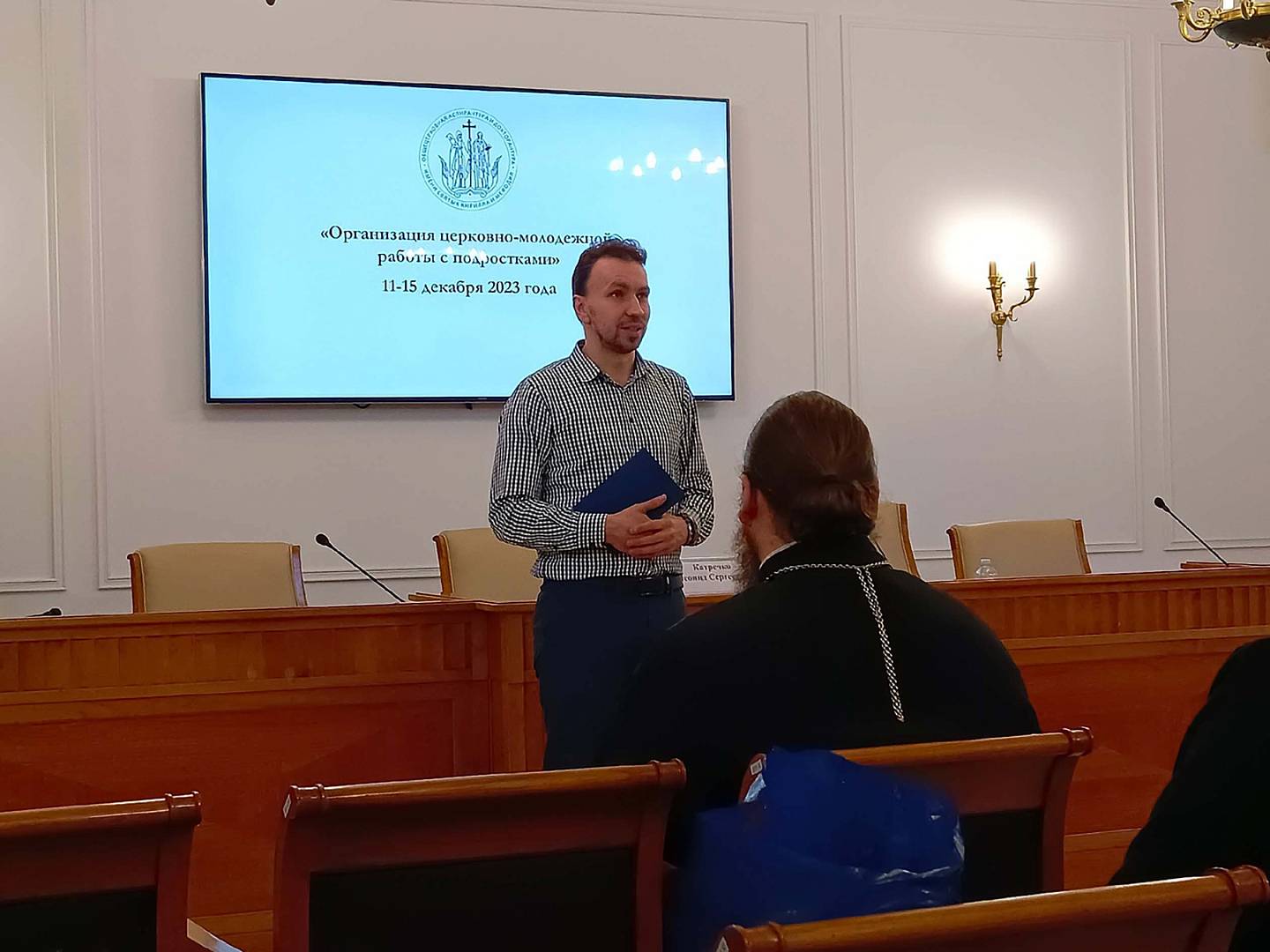 11 декабря 2023 года в актовом зале Общецерковной аспирантуры и докторантуры им. святых равноапостольных Кирилла и Мефодия состоялось открытие курсов повышения квалификации «Организация церковно-молодежной работы с подростками», которые были разработаны и подготовлены при содействии Синодального отдела по делам молодежи Русской Православной Церкви. Обучение на курсах проходит студент Ярославской духовной семинарии Никита Живаев.