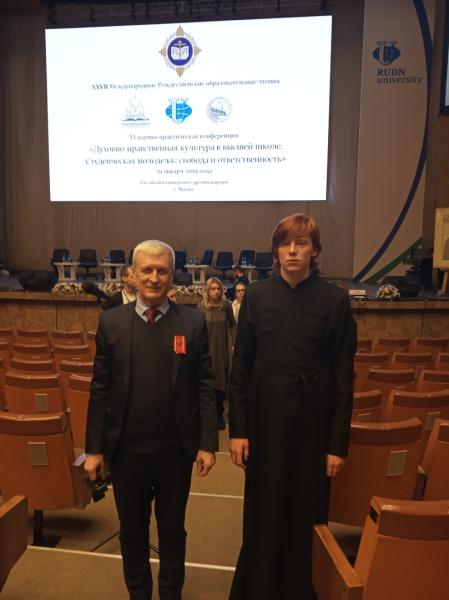 29 января в рамках XXVII Международных Рождественских образовательных чтений в РУДН прошла шестая научно-практическая конференция «Духовно-нравственная культура в высшей школе. Студенческая молодежь: свобода и ответственность». Организаторы конференции — Учебный комитет РПЦ, Московская духовная академия и Российский университет дружбы народов. В работе конференции приняли участие член Ярославского отделения Всемирного Русского Народного Собора, преподаватель Ярославского государственного университета, профессор Ю. Ю. Иерусалимский и студент Ярославской духовной семинарии Михаил Залавский.