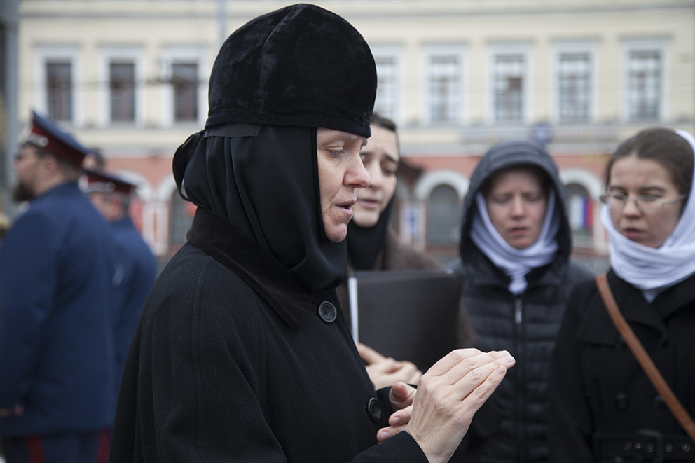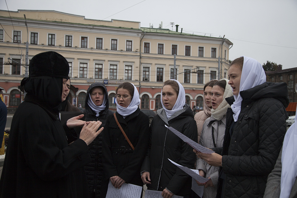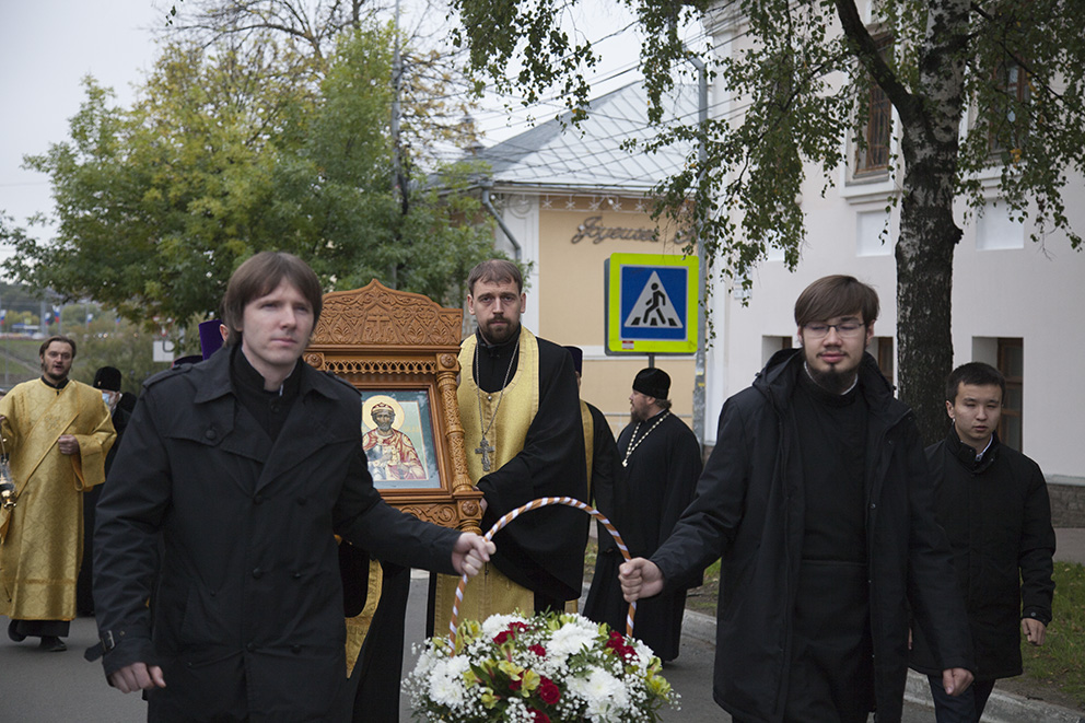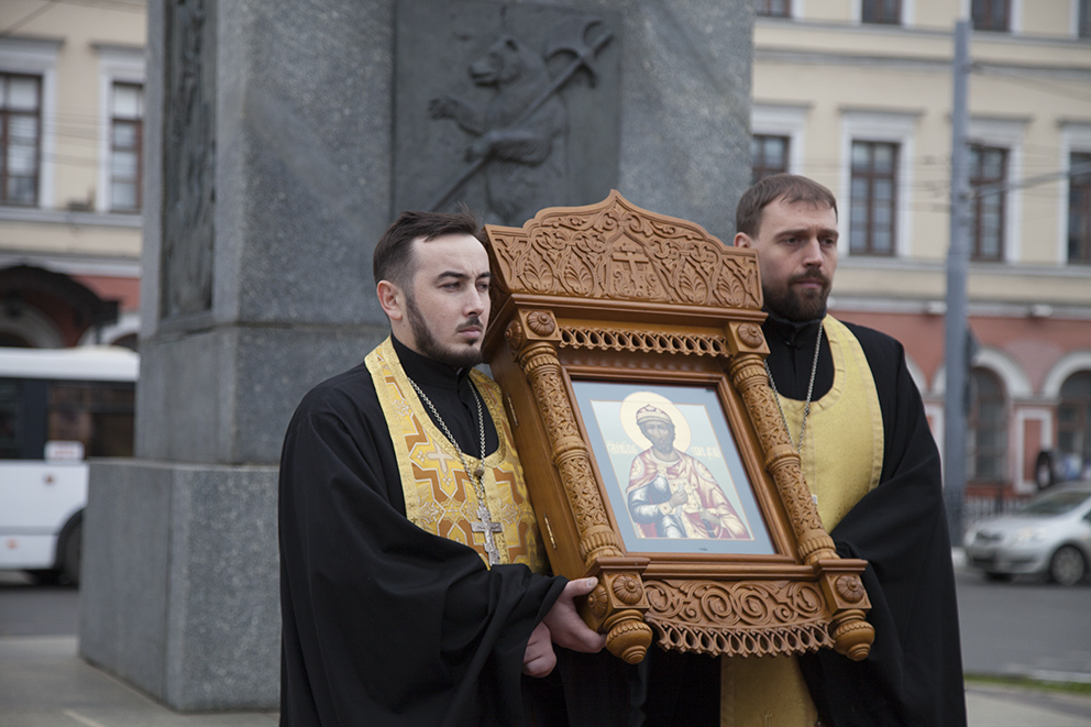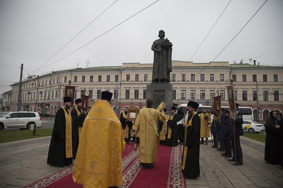 Перед молебном священнослужители, казаки и молящиеся прошли крестным ходом от Богоявленского храма к памятнику Ярославу Мудрому. В завершении молебна была прочитана молитва благоверному князю. За богослужением пел хор Регентской школы под управлением монахини Георгии (Кисловой).