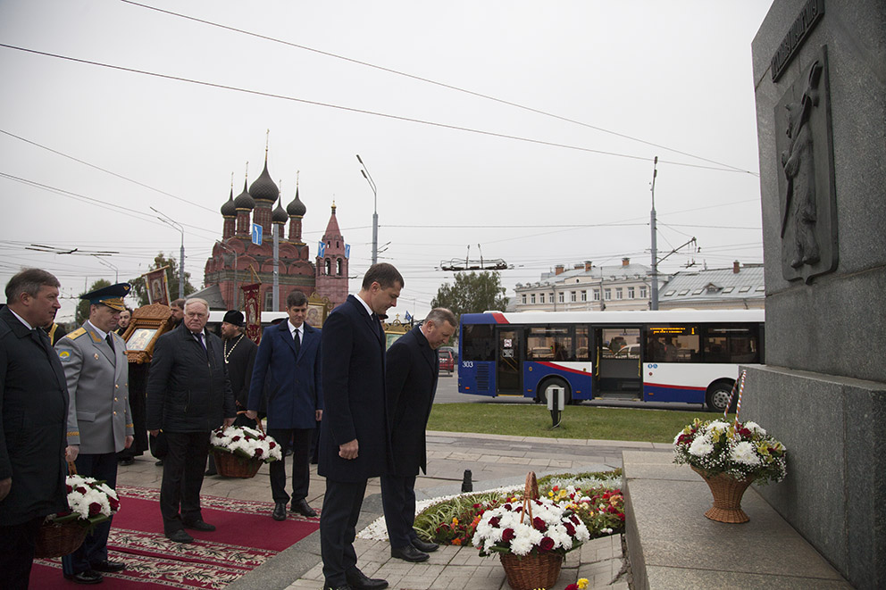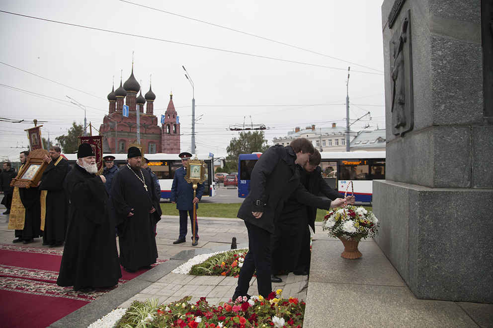 После молебна митрополит Ярославский и Ростовский Вадим, член Совета федерации С. В. Березкин, мэр города В. М. Волков, представители властных структур, общественности и священнослужители возложили цветы к памятнику основателю города.
