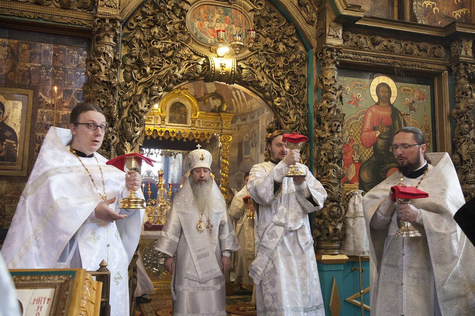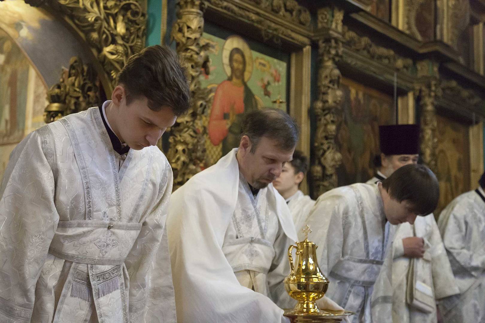 Богослужение совершили митрополит Ярославский и Ростовский Вадим, митрополит Волгоградский и Камышинский Феодор, епископ Рыбинский и Даниловский Вениамин, епископ Переславский и Угличский Феоктист, епископ Костомукшский и Кемский Борис и священнослужители Ярославской, Рыбинской, Переславской и Волгоградской епархий.