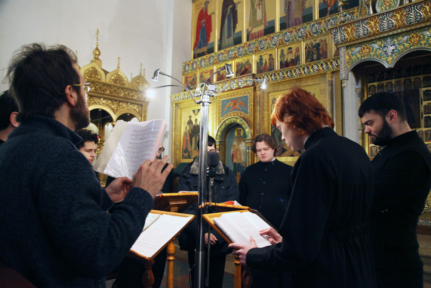 За Литургией хор исполнял песнопения на греческом языке. Иеромонах Сергий (Барабанов), отмечает, что в Успенском соборе греческие песнопения звучат очень хорошо.