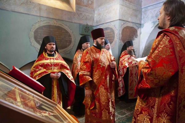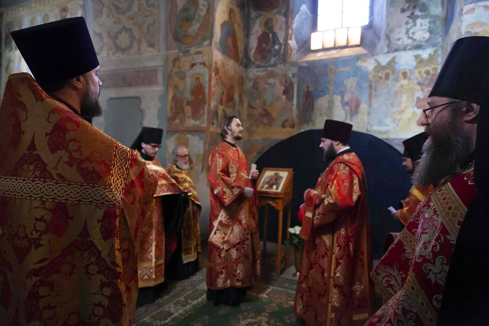Молебен совершил благочинный приходов Центрального городского округа протоиерей Олег Косолапов в сослужении настоятеля Спасо-Преображенского подворья иеромонаха Агафангела (Шкуранкова), проректора Ярославской духовной семинарии по учебной работе игумена Бориса (Баранова), заведующего заочным сектором семинарии иеромонаха Андрея (Кукушкина) и клириков храмов г. Ярославля. Песнопения молебна исполнялись хором Регентской школы при Ярославской духовной семинарии. В древней церкви, сохранившей уникальные росписи, в том числе с изображением ярославских подвижников, молились прихожане храмов, воспитанники семинарии.