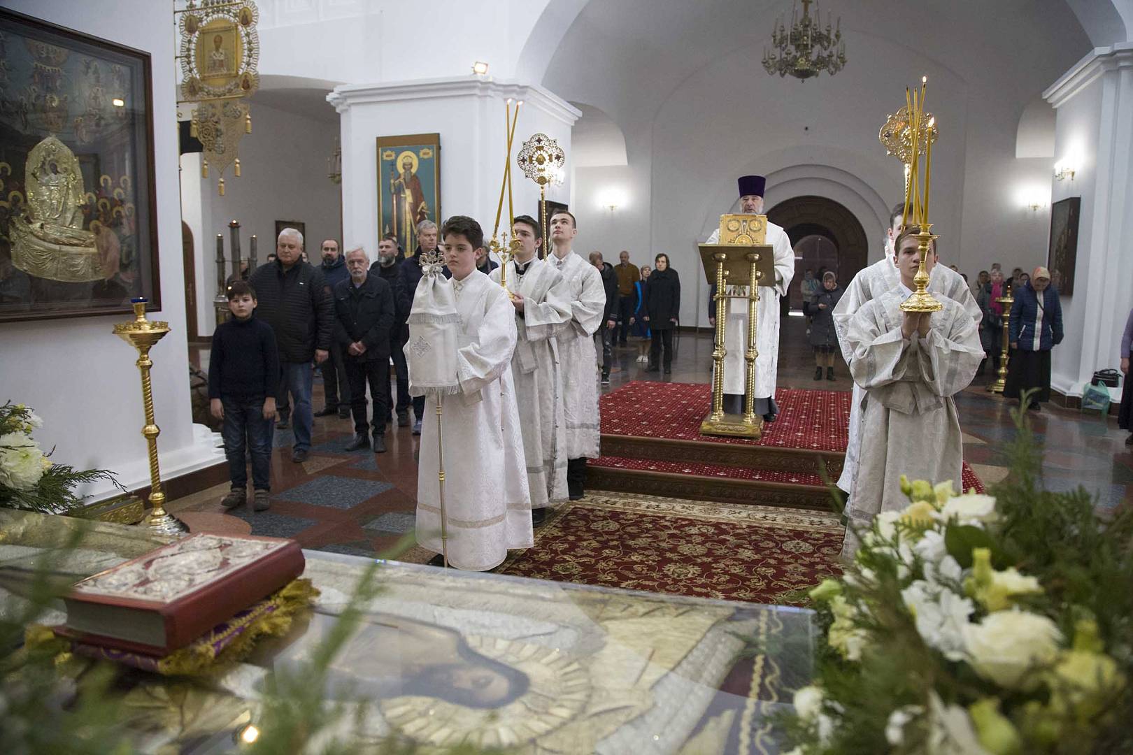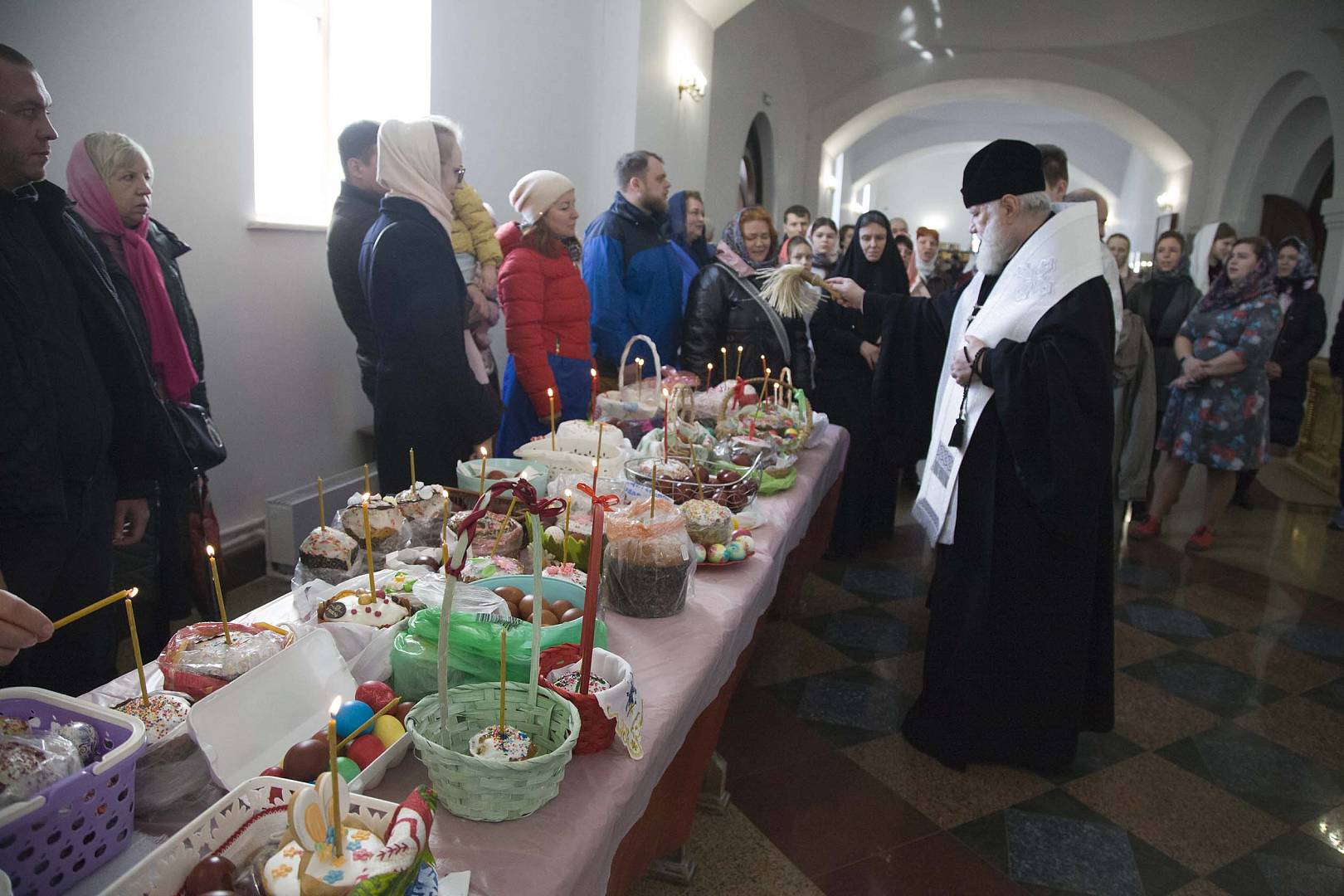Владыка вознес молитву о мире на Святой Земле, которая ежегодно совершается в Великую субботу во всех храмах Русской Православной Церкви. По заамвонной молитве было совершено освящение хлеба и вина. После богослужения владыка поздравил всех с Великой Субботой.