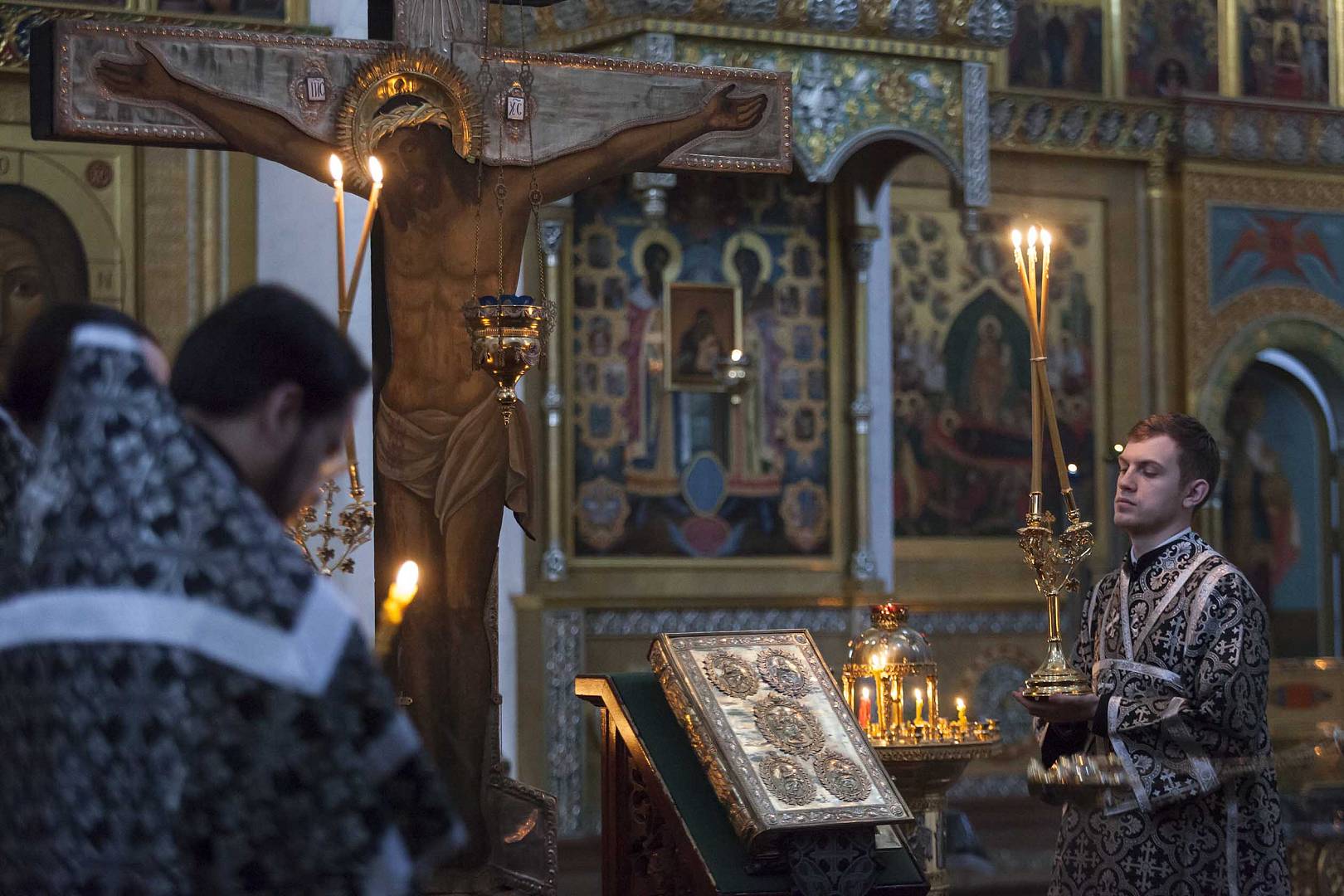 Воспитанники семинарии молились за вечерней с акафистом Божественным Страстям Христовым (пассией)