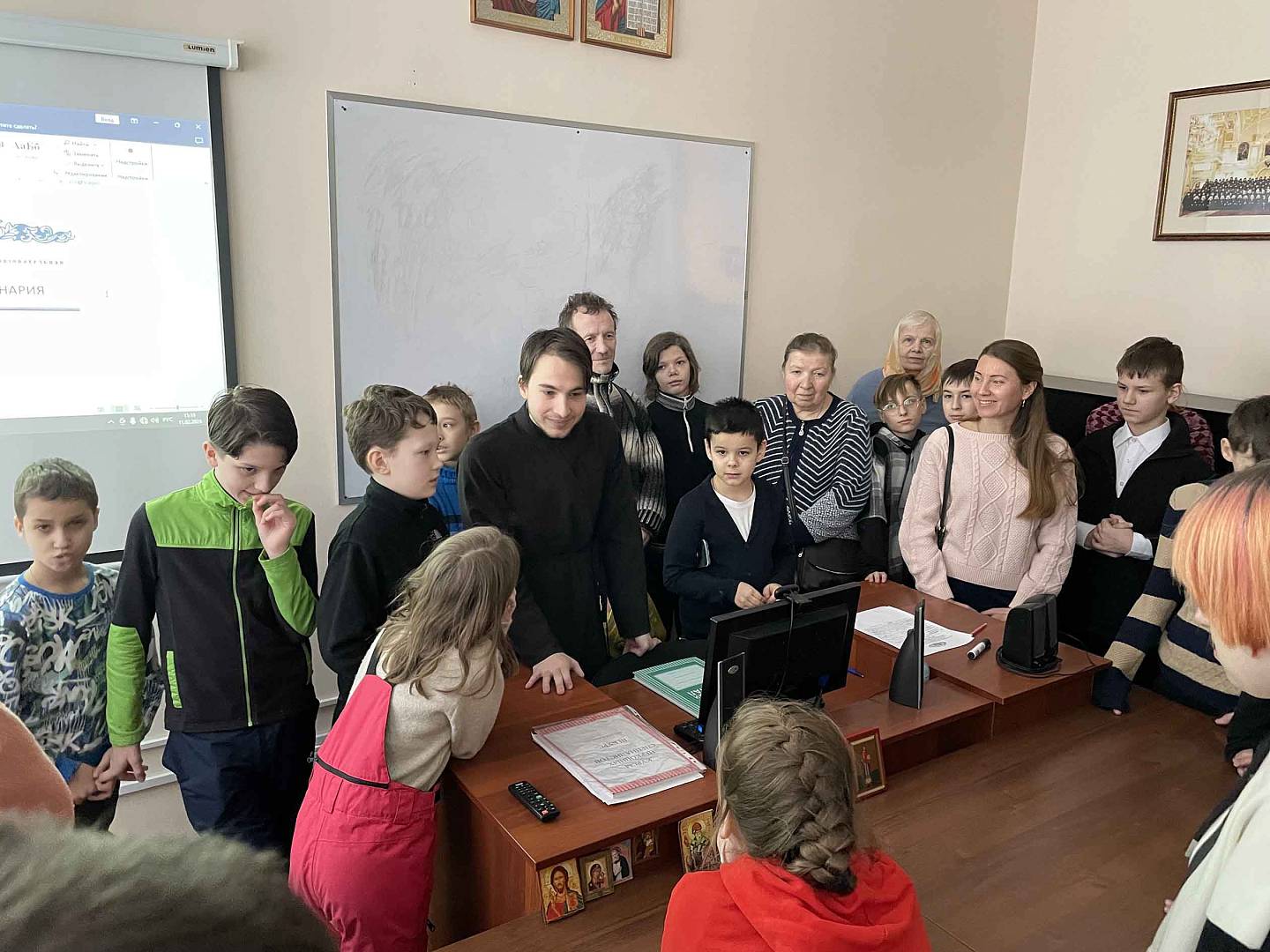 11 февраля 2024 года воспитанники воскресных школ храмов г. Ярославля вместе с родителями и преподавателями в сопровождении руководителя Молодежного отдела епархии иерея Ильи Шаблыкова посетили Ярославскую духовную семинарию.