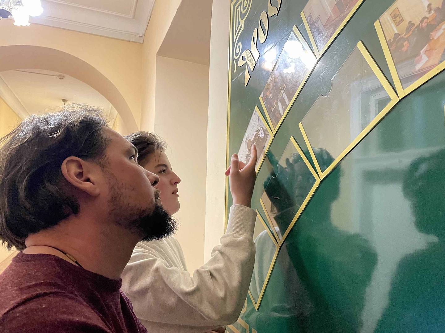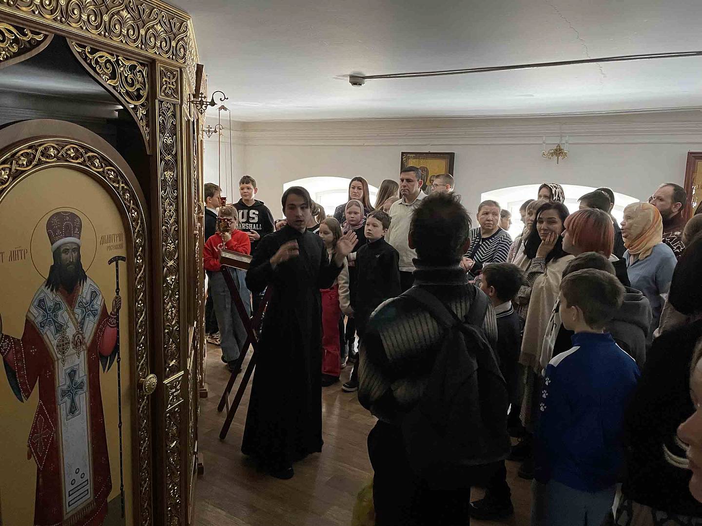 Экскурсию по семинарии провел студент Никита Живаев. Гости узнали интересные факты из истории семинарского здания, познакомились с историческими личностями, связанными с духовным образованием на Ростово-Ярославской земле. На экскурсии можно было посетить семинарских храм, который был оборудован два года назад, учебные классы и бытовые помещения. Закончилась встреча в семинарской трапезной, где гости могли угоститься чаем и сладостями.