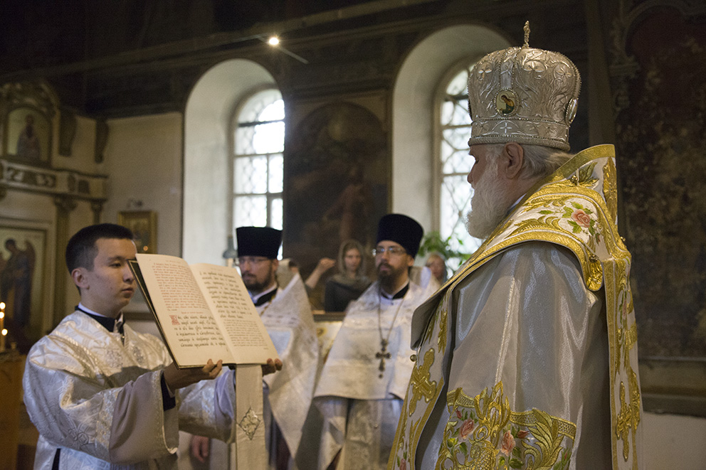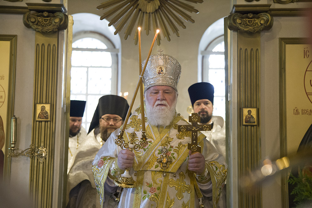 После Божественной литургии митрополит Ярославский и Ростовский Вадим обратился к молящимся в храме с напутственным словом и поздравил всех с Вознесением Господним.