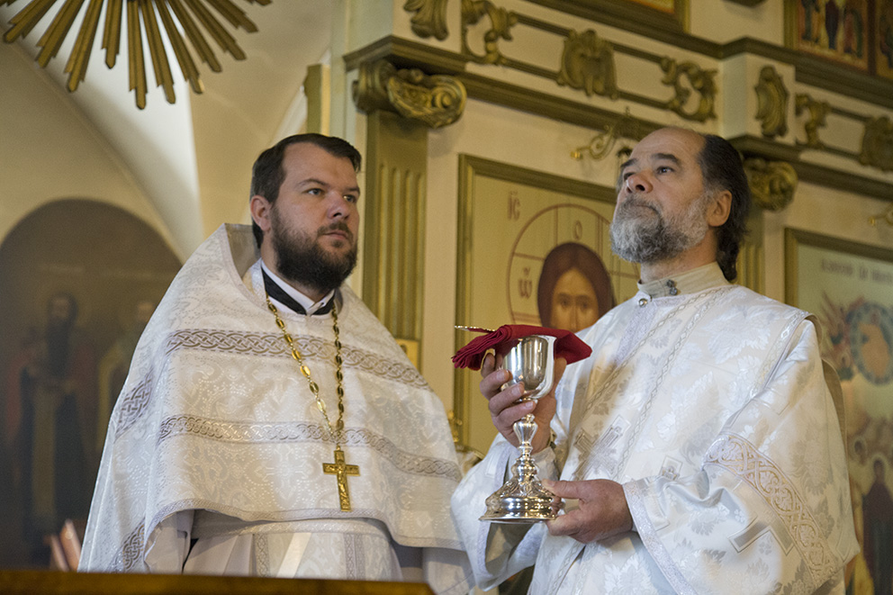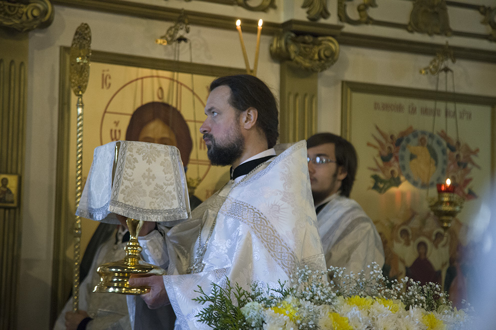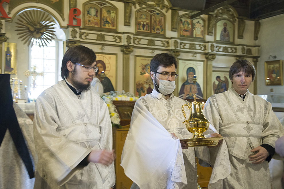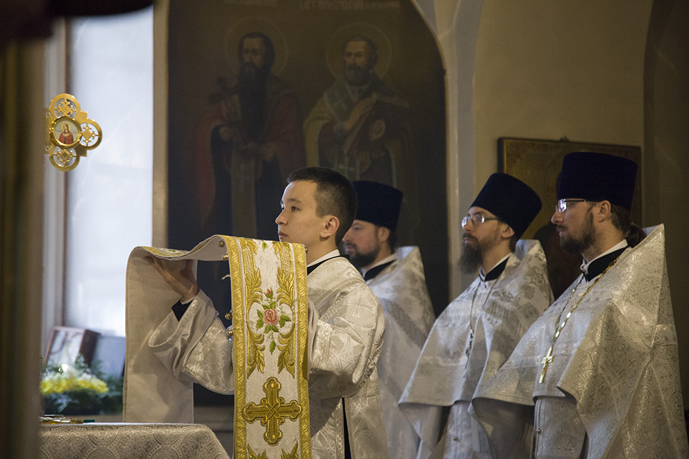 За Литургией владыке сослужили: благочинный приходов Центрального округа г. Ярославляпротоиерей Олег Косолапов, настоятель храма и руководитель Отдела митрополии по социальному служению и благотворительности иеромонах Агафангел (Шкуранков), настоятель Сретенского храма и руководитель Отдела религиозного образования и катехизации Ярославской митрополии протоиерей Павел Рахлин, настоятель храма Ярослава Мудрого г. Ярославля иерей Алексий Карпов и клирики Успенского кафедрального собора Ярославля.