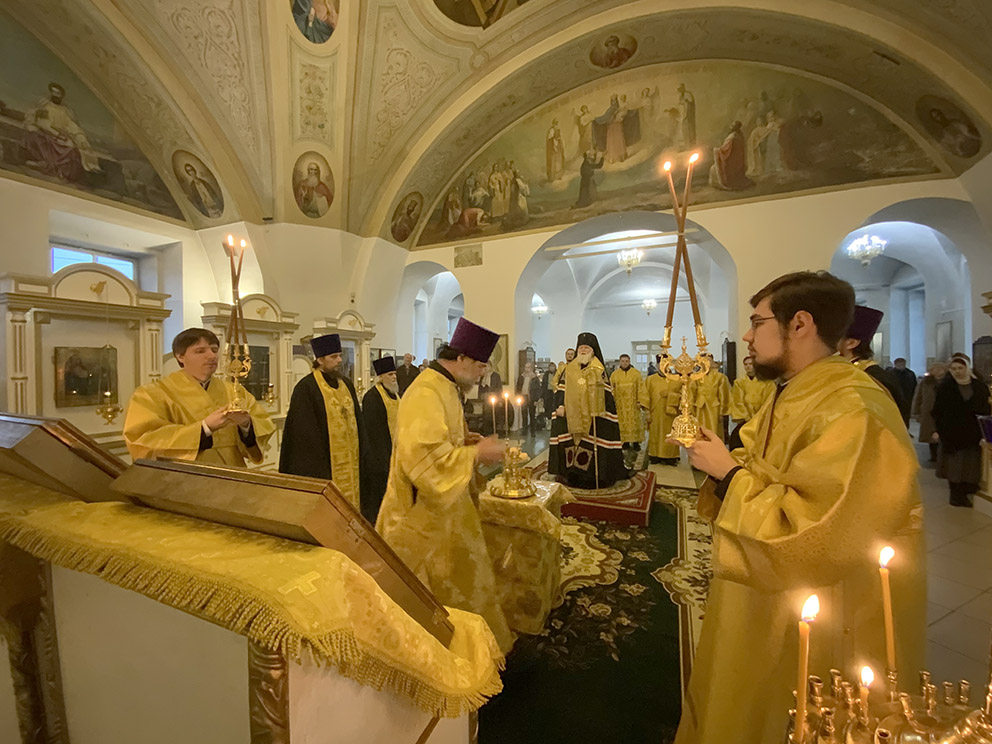 12 марта 2022 года, накануне Недели Торжества Православия, митрополит Ярославский и Ростовский Вадим совершил Всенощное бдение в Казанском женском монастыре г. Ярославля. За богослужением помогали воспитанники семинарии.