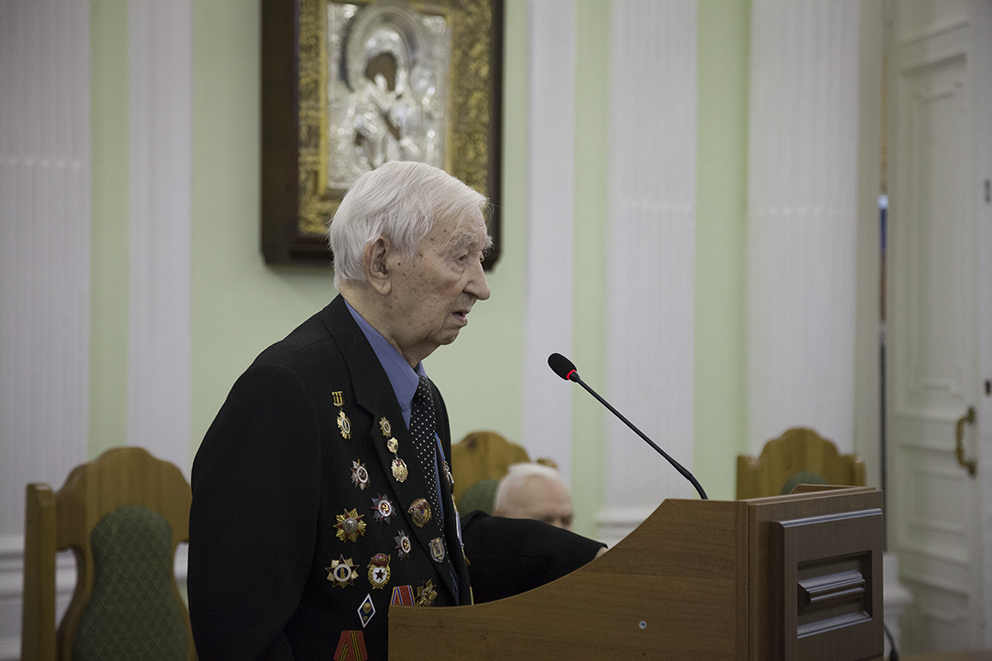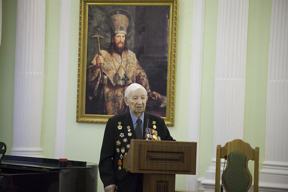 Ветеранам уже за 90, но они прекрасно помнят события военных лет. Военные истории ветераны рассказали семинаристам и преподавателям семинарии, воспитанницам Регентской школы и гостям семинарии. На встрече прозвучали и песни военных лет, которые исполнил тенор Владимир Корнилов.