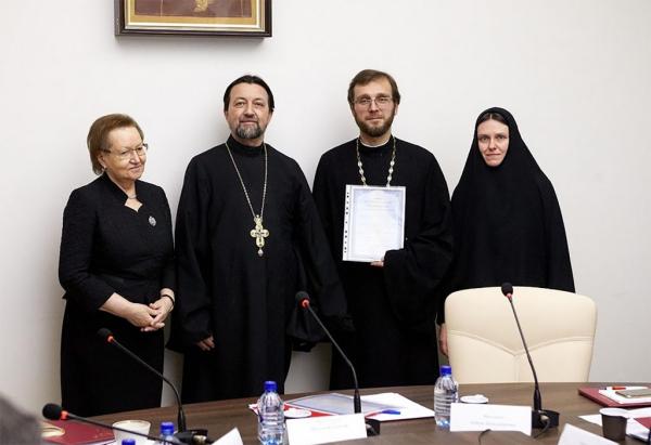 Председатель Учебного комитета протоиерей Максим Козлов вручил свидетельства о церковной аккредитации программ подготовки регентов представителям Воронежской и Ярославской духовной семинарий; наградил грамотами за значительный вклад в развитие регентского образования Русской Православной Церкви проректора по культуре Санкт-Петербургской Духовной Академии Гундяеву Елену Михайловну, Сологуб Анну Петровну, Максимова Антона Александровича, Шелудякову Оксану Евгеньевну.