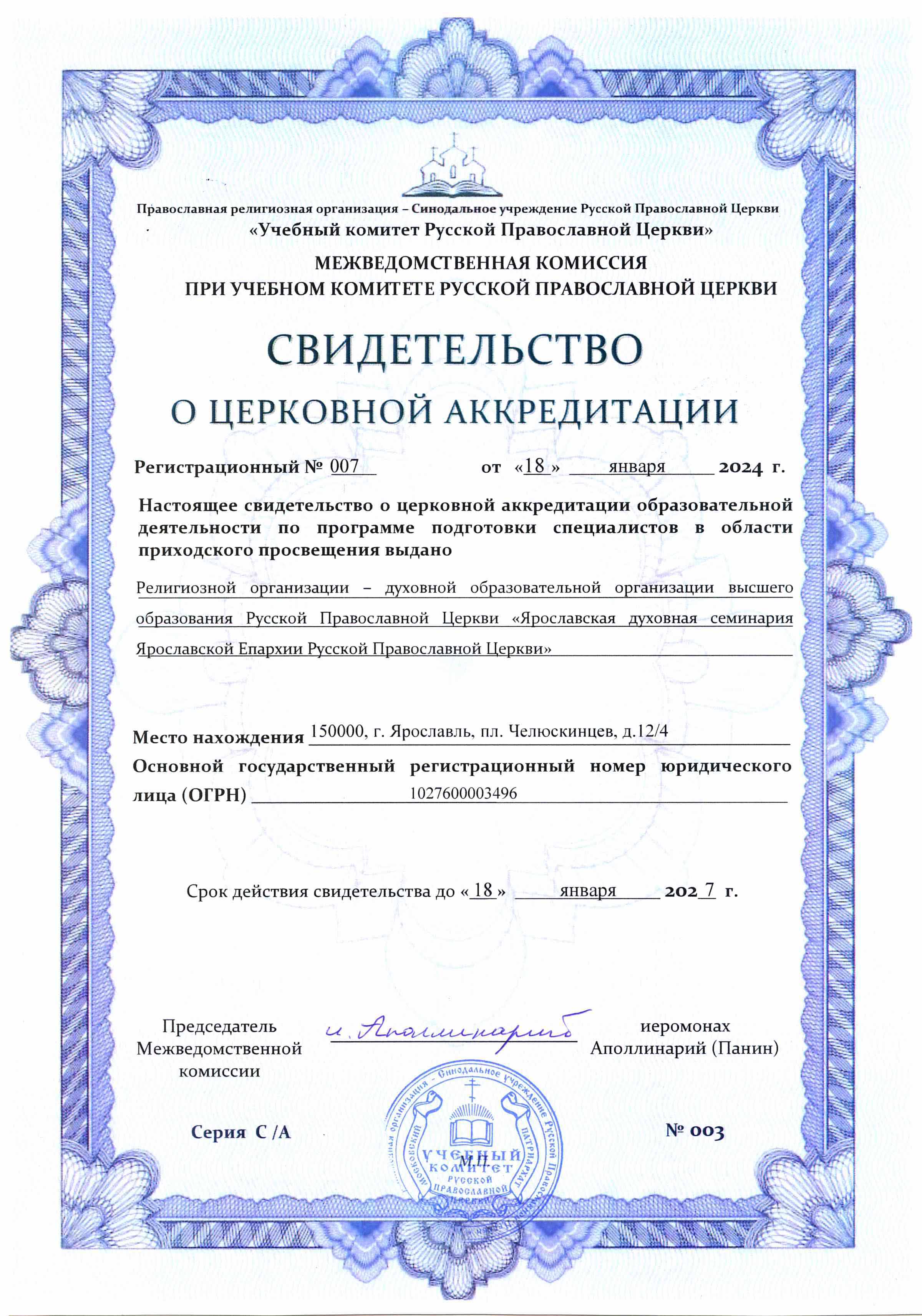 Изучение богословских дисциплин по программам подготовки церковных специалистов проходит на базе Ярославской духовной семинарии. Лекции проводят преподаватели семинарии.