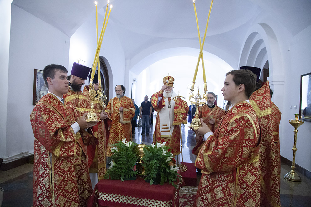9 августа 2024 года, в день памяти великомученика и целителя Пантелеимона, митрополит Ярославский и Ростовский Вадим совершил Божественную литургию в Пантелеимоновском приделе Успенского кафедрального собора г. Ярославля. За богослужением помогали воспитанники семинарии.