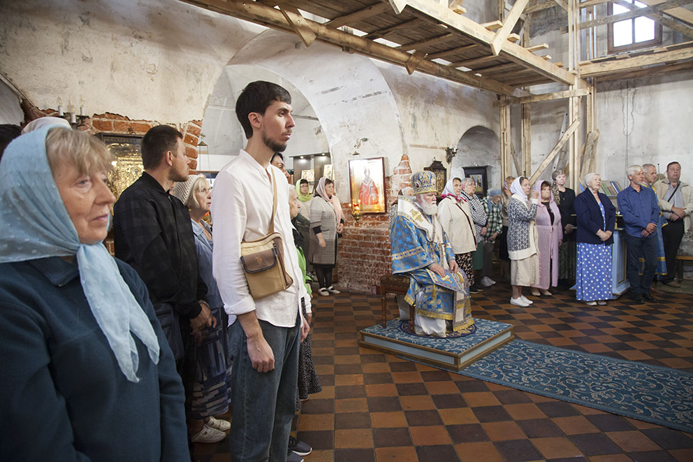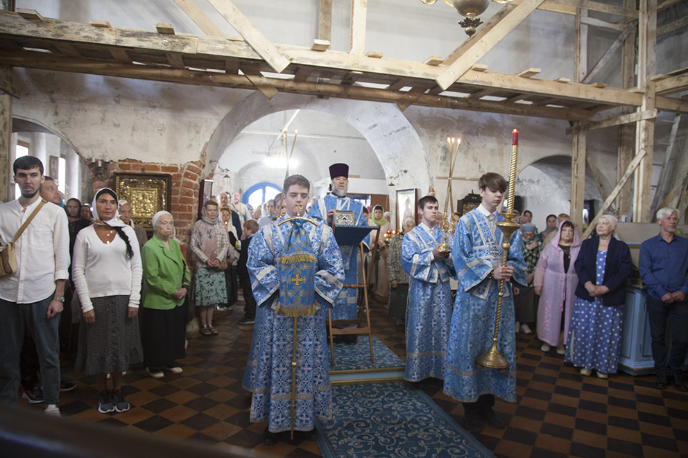Божественную литургию во Владимирском храме на Божедомке г. Ярославля 8 сентября 2024 года, в день Сретения Владимирской иконы Божией Матери, совершил митрополит Ярославский и Ростовский Вадим. Владыке сослужили: секретарь епархии и настоятель Крестобогородского храма Ярославля иерей Александр Пчелкин, благочинный приходов Центрального городского ярославского округа и настоятель храма Димитрия Солунского Ярославля протоиерей Олег Косолапов, настоятель Владимирского храма иерей Алексий Морозов, руководитель Отдела религиозного образования и катехизации Ярославской митрополии и настоятель Сретенского храма Ярославля протоиерей Павел Рахлин и клирики епархии. За богослужением помогали воспитанники семинарии.