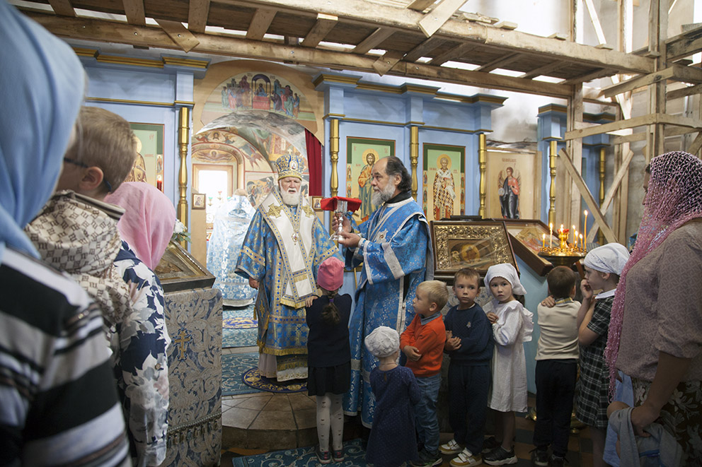 – Под покровом Царицы Небесной вот уже семь лет мы восстанавливаем этот храм, – рассказывает настоятель иерей Алексий Морозов. – Уже третий учебный год при храме действует первый в области православный детский садик. В этом году мы прошли регистрацию в Министерстве юстиции как дошкольное образовательное частное учреждение. Называется детский садик «Покровский», так как находится в здании бывшего зимнего Покровского храма прихода.
