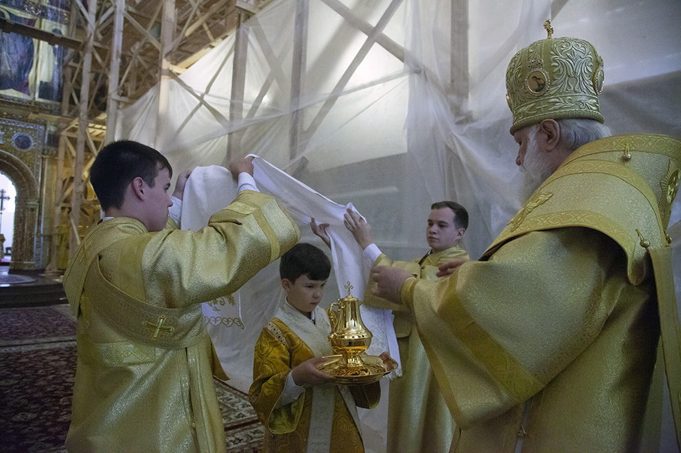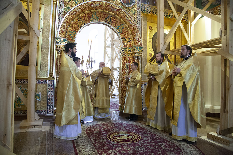 18 августа 2024 года, в Неделю 8-ю по Пятидесятнице, на предпразднство Преображения Господня, митрополит Ярославский и Ростовский Вадим совершил Божественную литургию в Успенском кафедральном соборе г. Ярославля. За богослужением помогали воспитанники семинарии.
