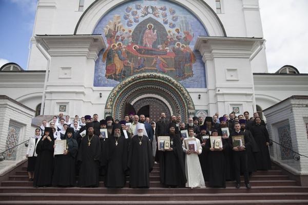После богослужения владыка митрополит вручил дипломы выпускникам-семинаристам, свидетельства выпускникам курсов базовой подготовки в области богословия для монашествующих и выпускникам курсов церковных специалистов.